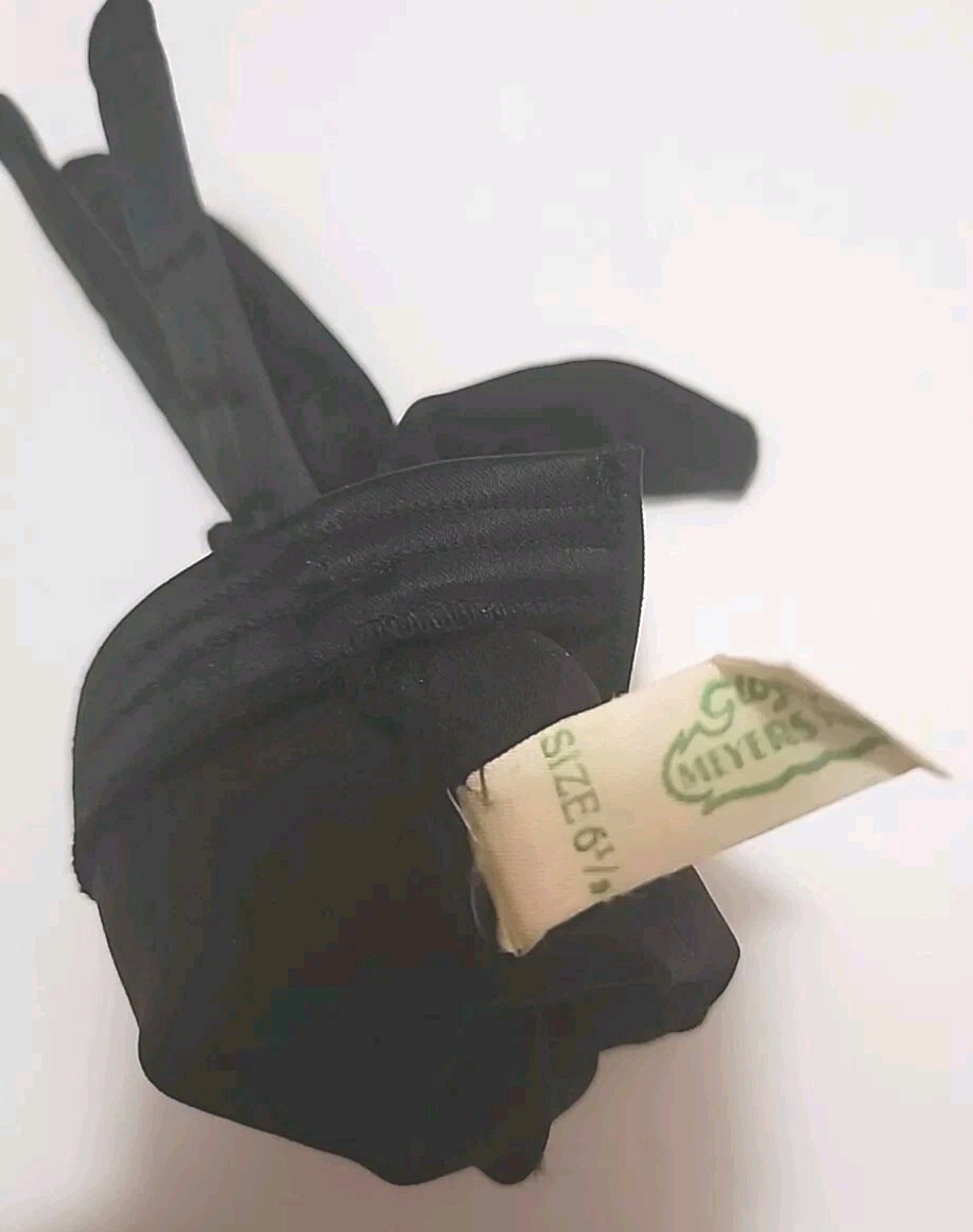 как выглядит VINTAGE 1960S BLACK SATIN GLOVES Wrist length Size 6 1/2 Meyers Make NWOT фото