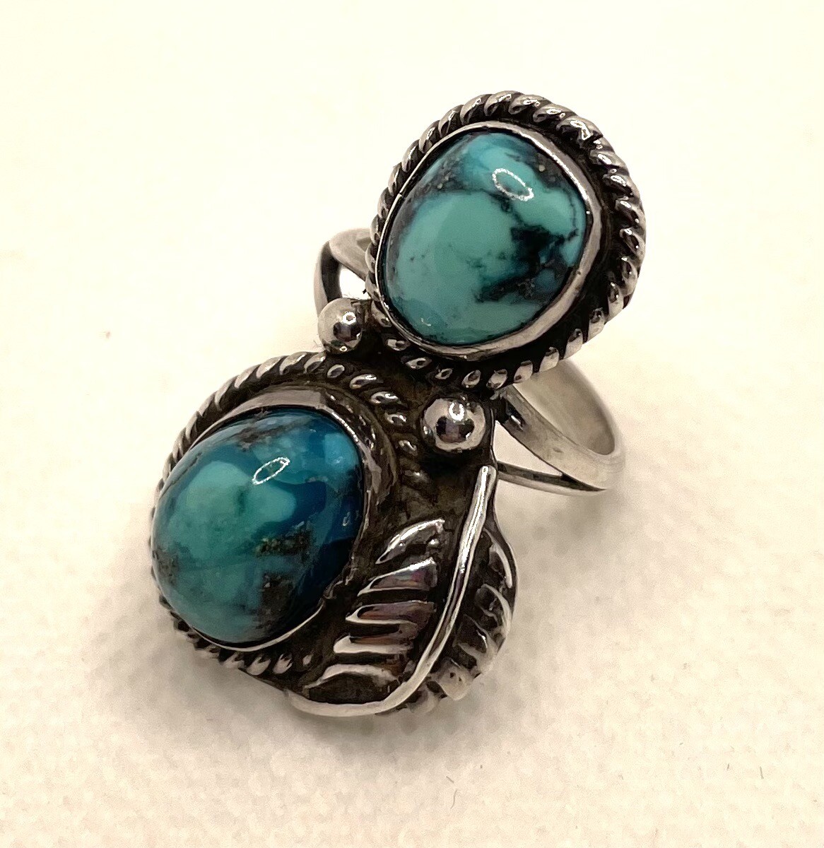 Vintage Native American sterling silver turquoise cabochon ring 6.5