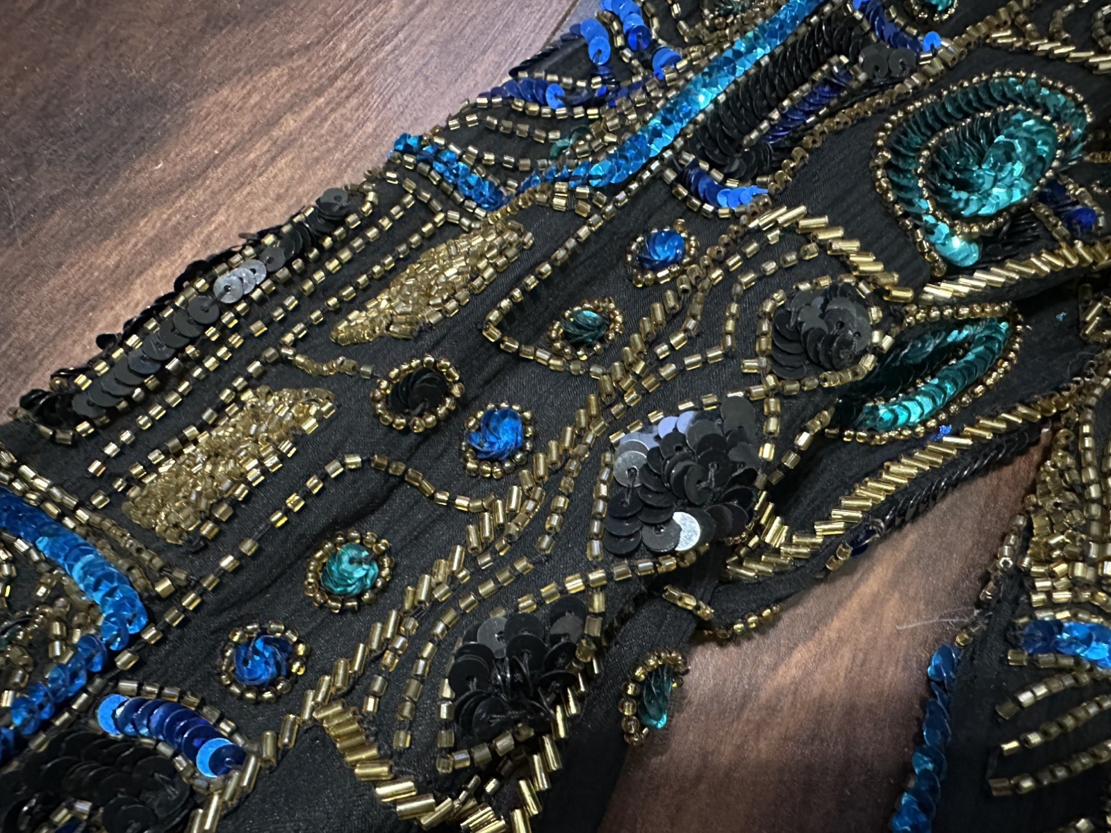 как выглядит Vintage Y2K Scala Hand Beaded Sequin Black Gold Blue Silk Evening Jacket XL фото