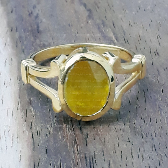 Natural Yellow Sapphire Ring 22k Over Gold Astrological Birthstone Ring for her