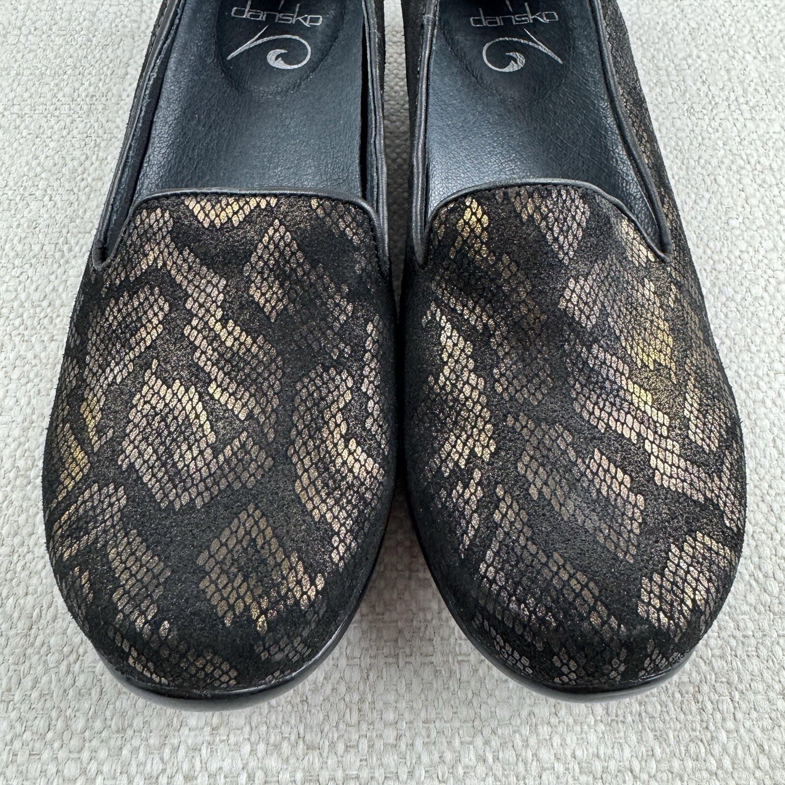 Dansko Olivia Black Gold Snake Print Loafers Women s Shoes Size 7.5-8 EU 38