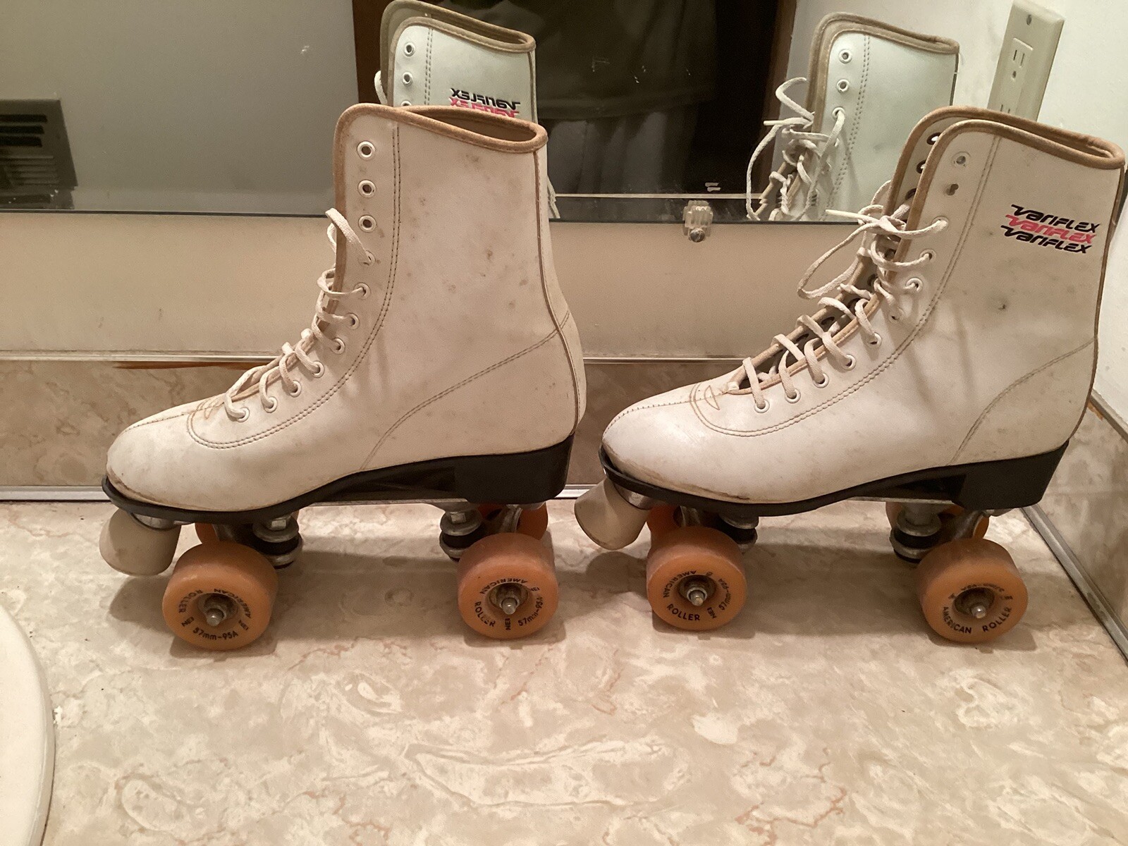 Vintage Ladies Sz. 8 Variflex White Roller Skates Sealed Bearing Wheels