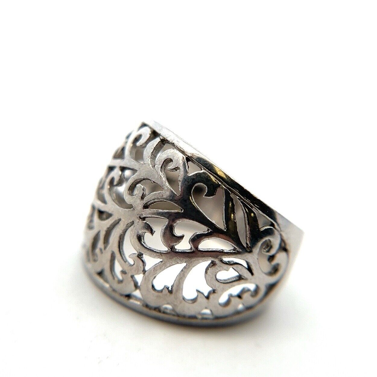 как выглядит 925 Sterling Silver Open Work Filigree Wide Band Ring Size: 7.5 фото