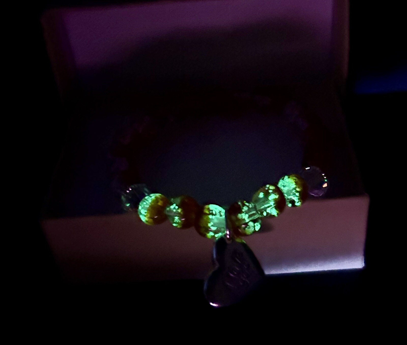 как выглядит Luminous Glow In The Dark 8mm Red Glass Beaded Bracelet- handmade Stretchy фото