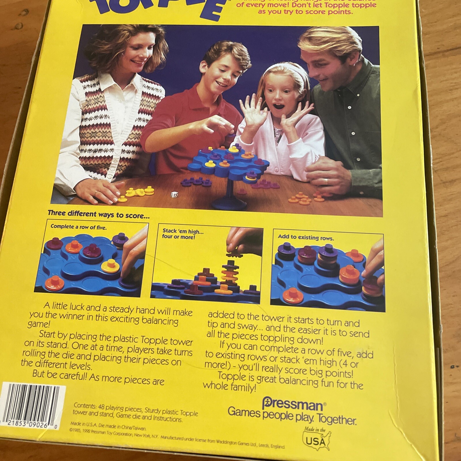VINTAGE TOPPLE Game Pressman Family Fun, VINTAGE 1990s Board Game Yellow HTF VTG