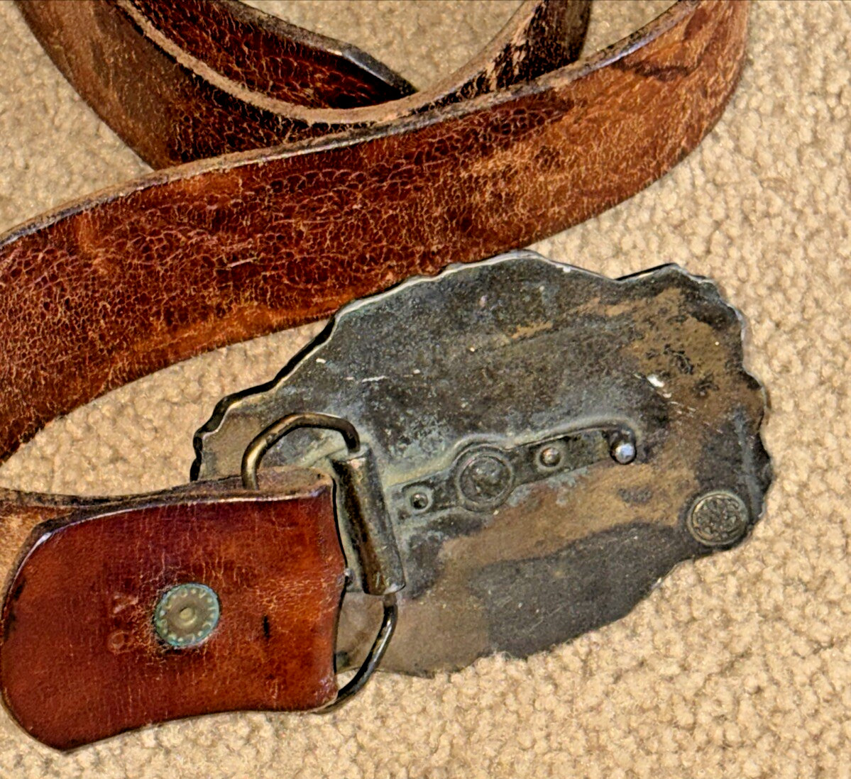 как выглядит Vintage Livingston Wells Co Foreign Domestic Gold Dealers Brass Belt Buckle фото