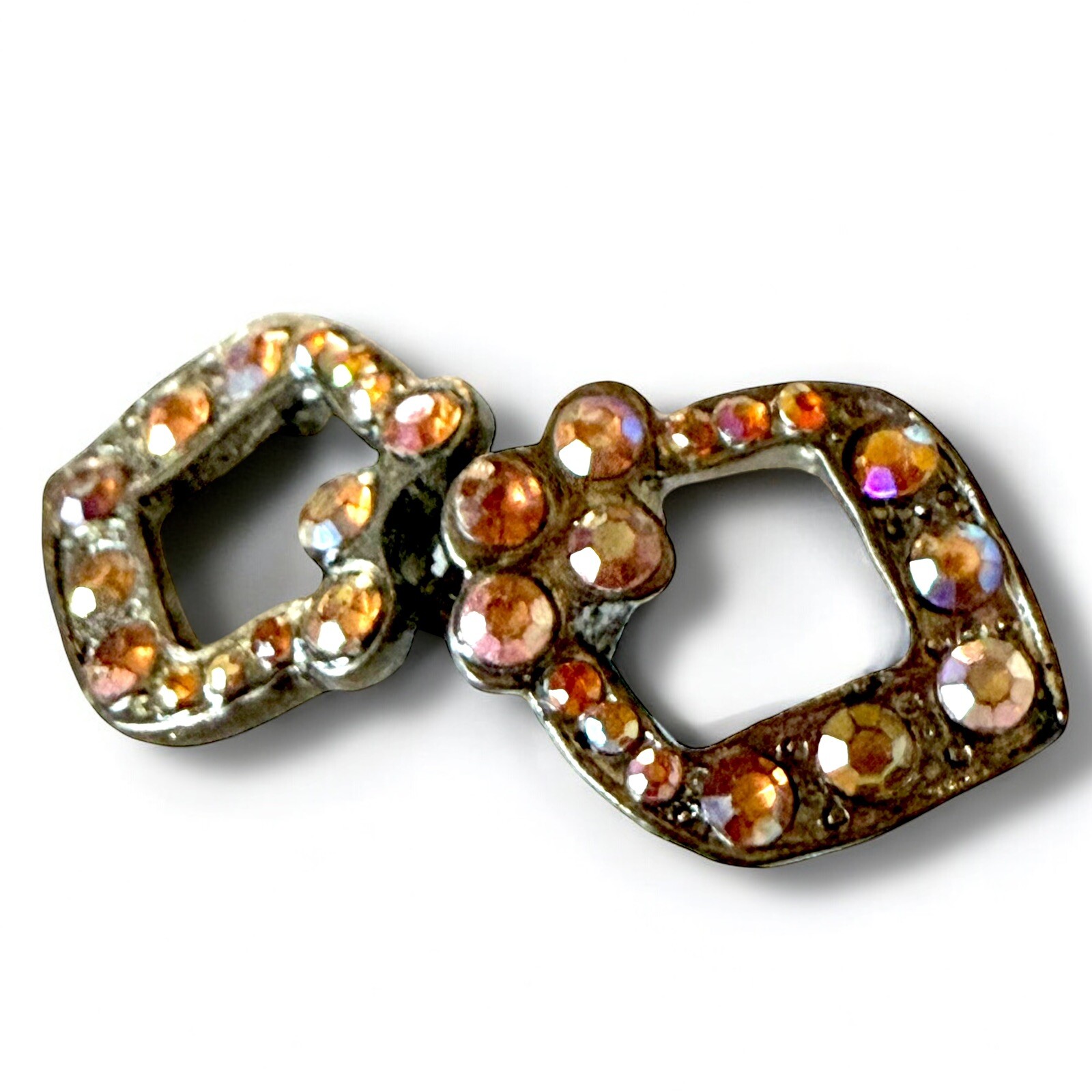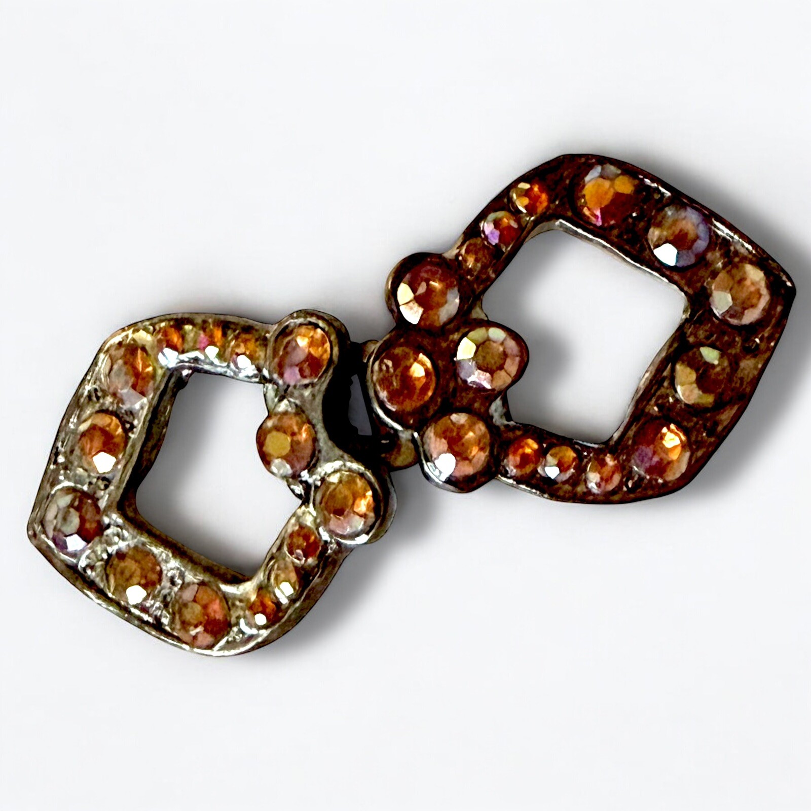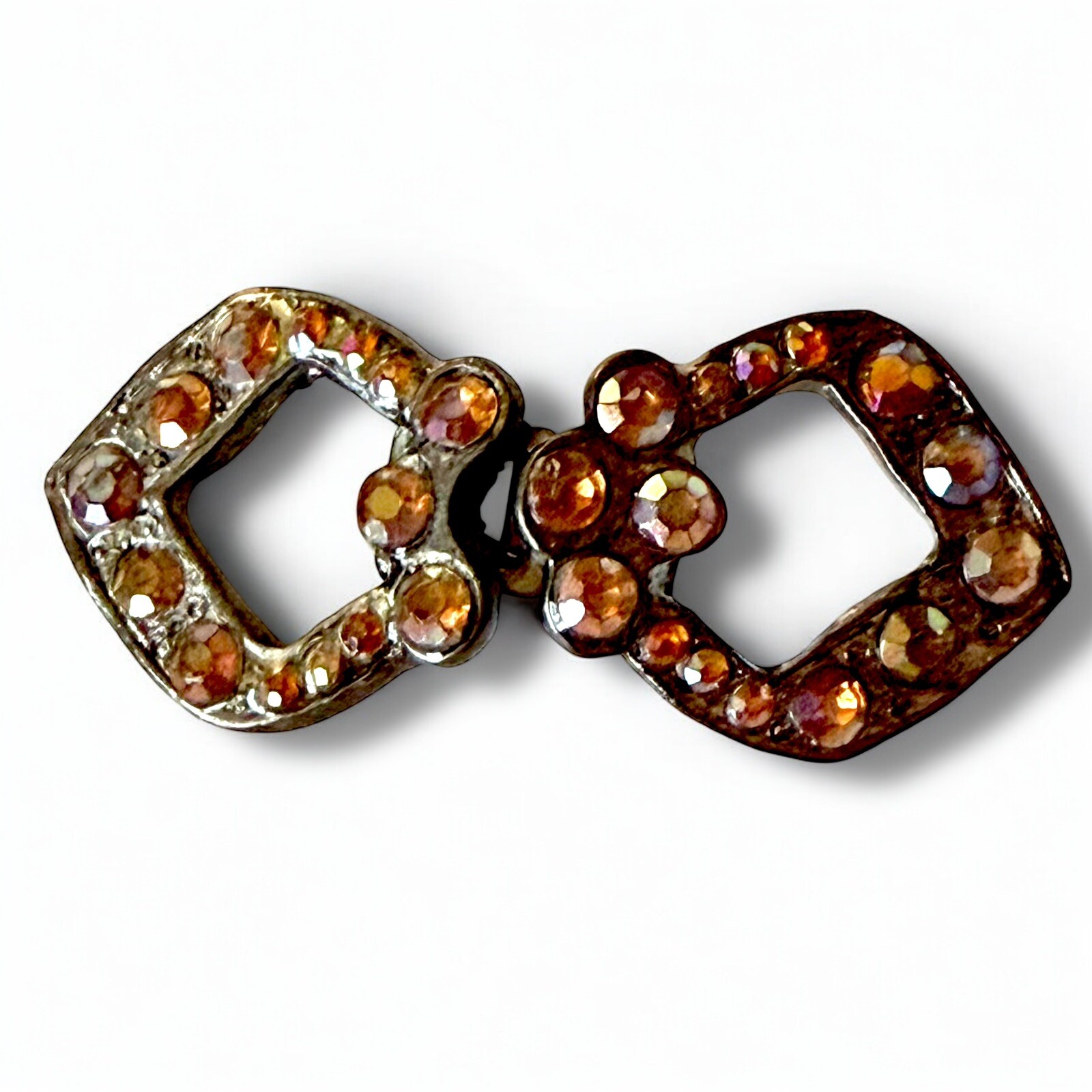 Antique Rhinestone Belt Buckle Art Deco Pot Metal Edwardian Double Buckle