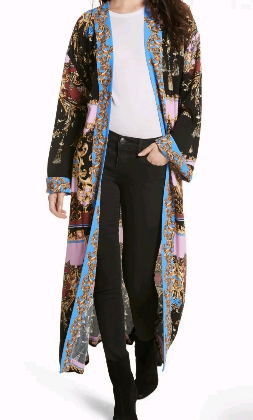 Free People Let's Dance Jacket In Black Open Duster Kimono Women's Size XS