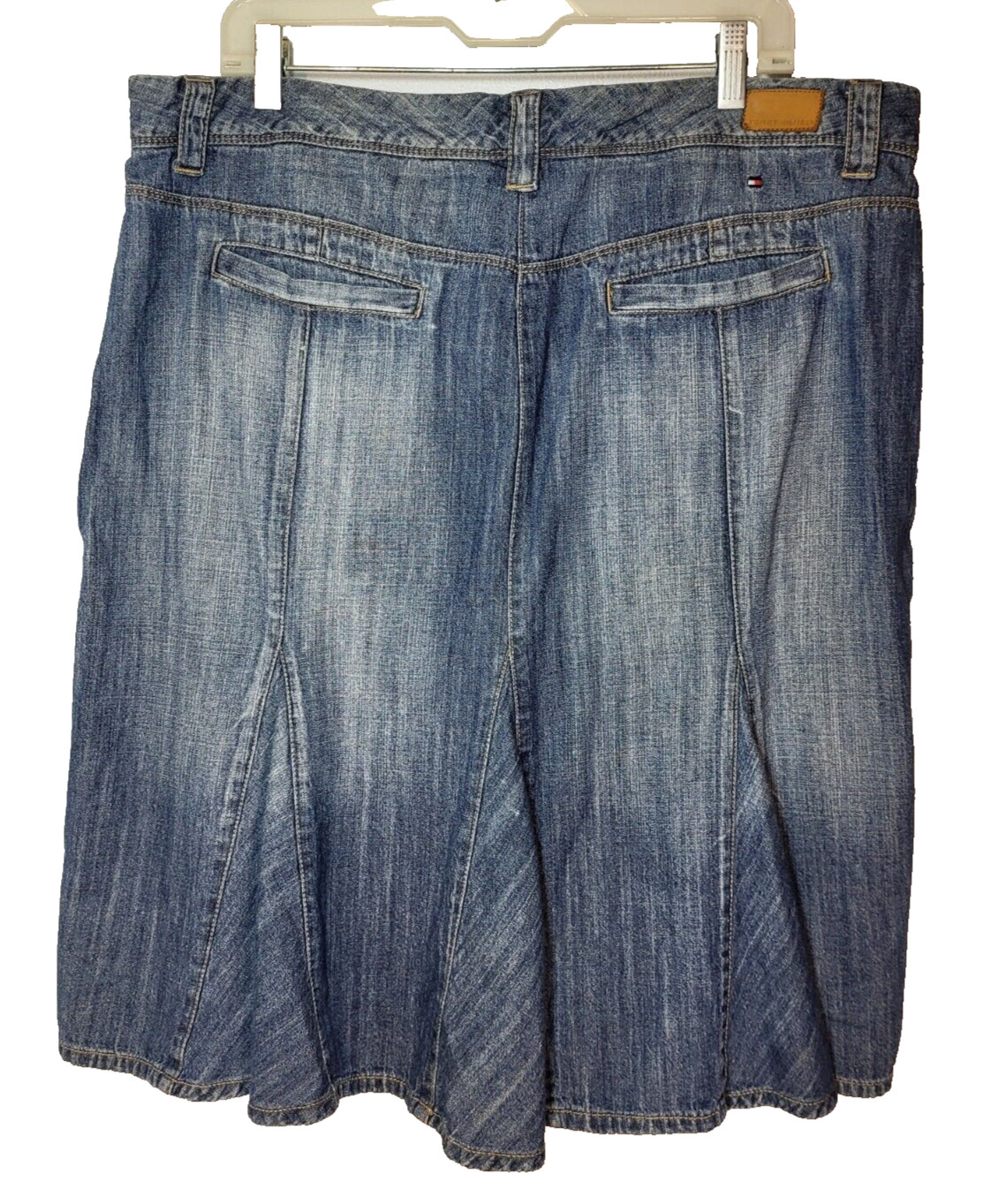 как выглядит VTG Tommy Hilfiger Blue Denim Cotton Jean Godet Skirt Pockets Y2K Size 16 фото