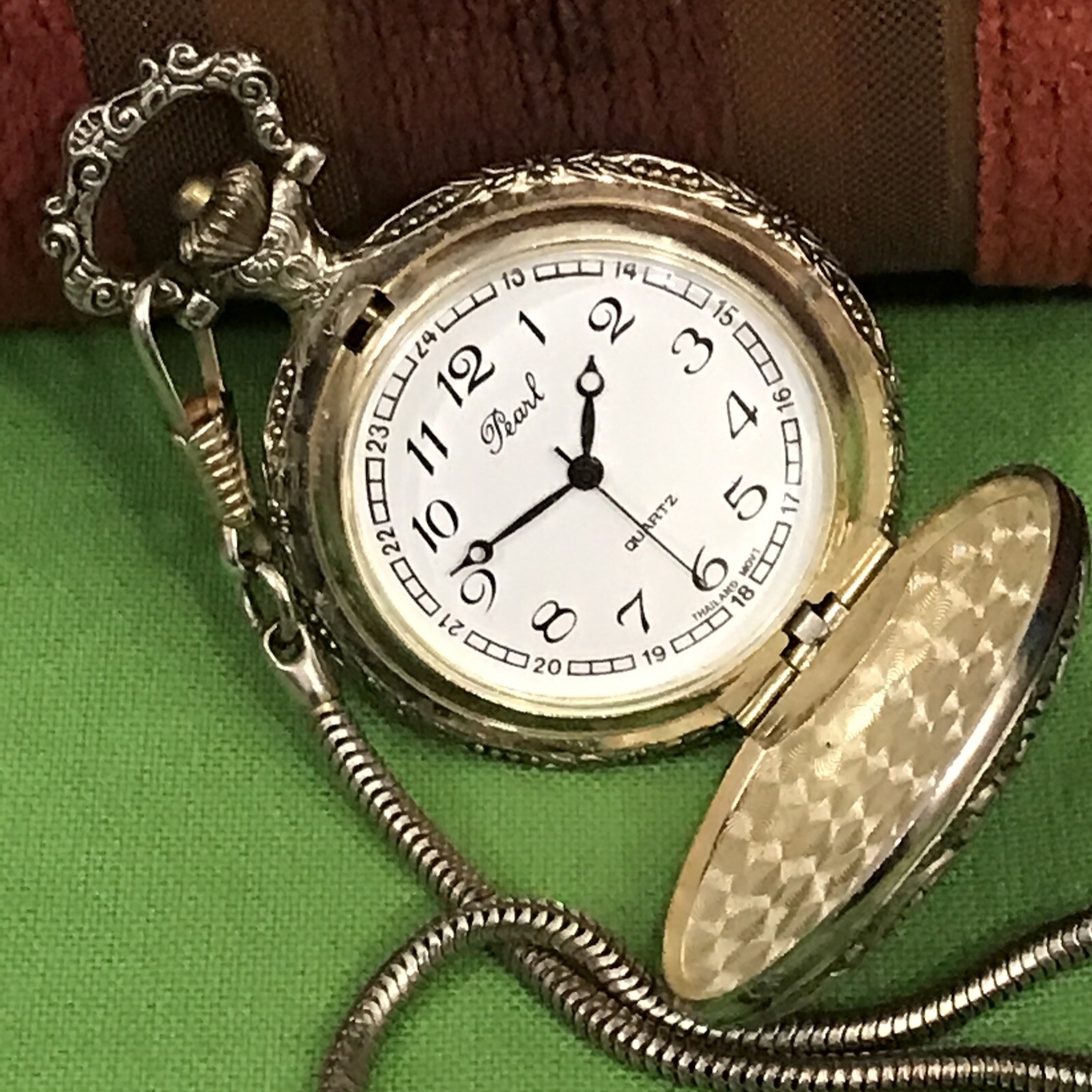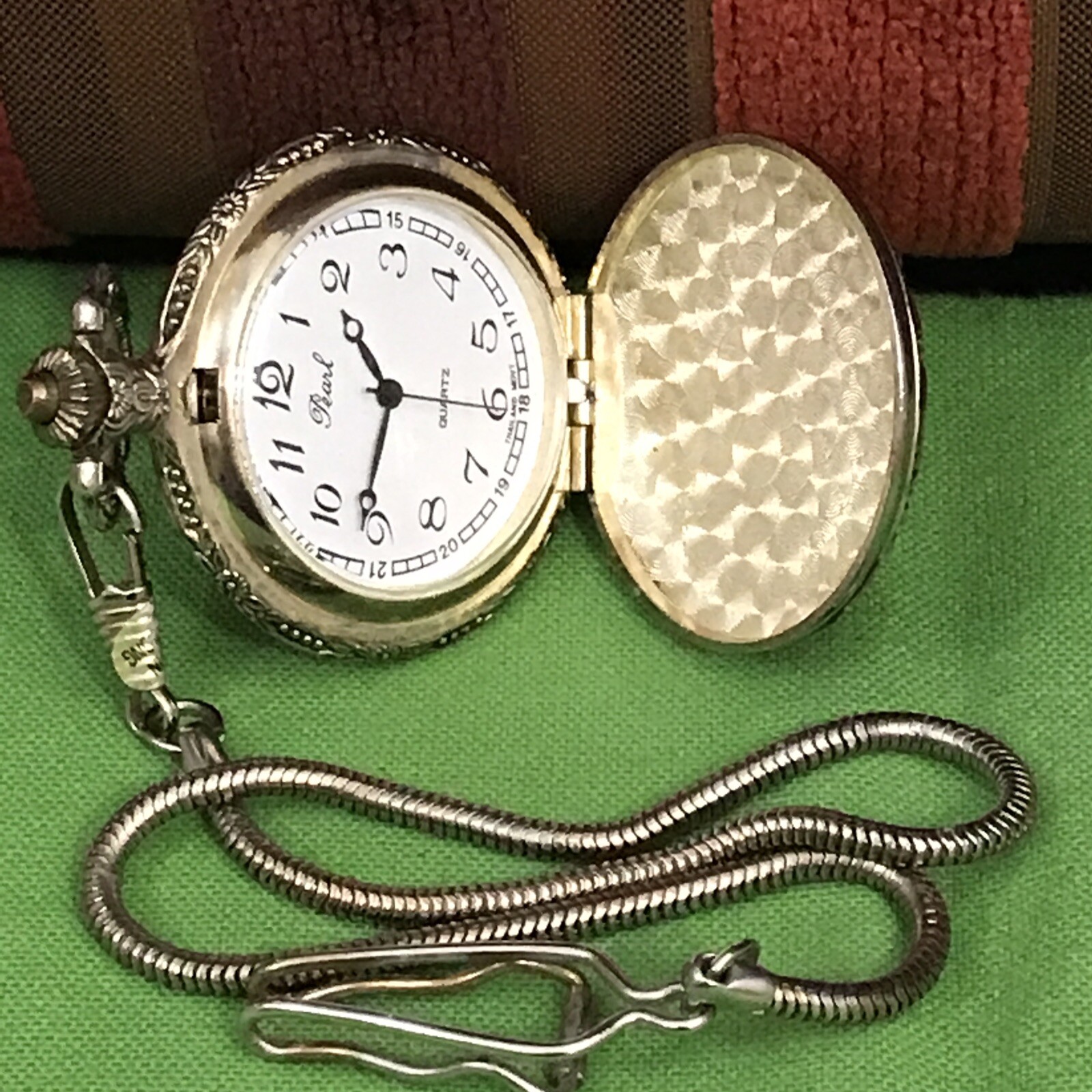 PEARL QUARTZ TRAIN LOCOMOTIVE POCKET WATCH.