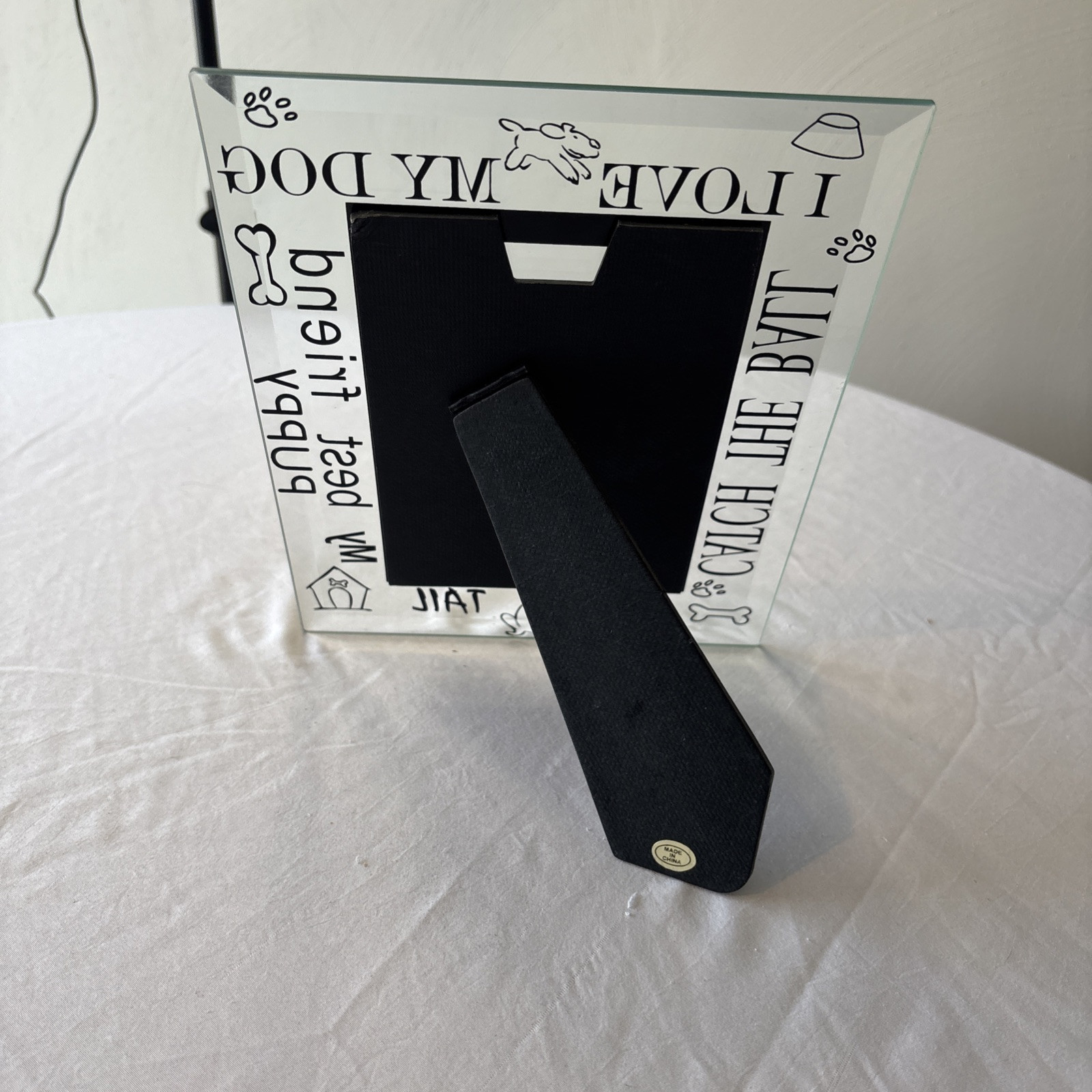 Glass picture frame for my dog, freestanding best friend puppy I Love my Dog..