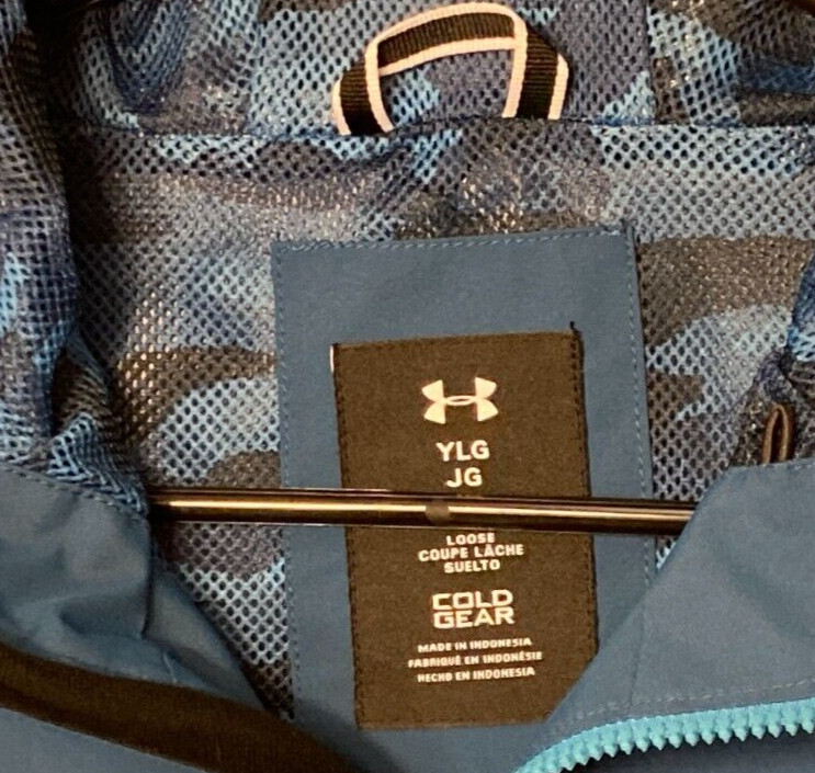 Under Armour COLD GEAR Kids Blue Loose Fit Lined Rain Jacket YL Youth Large