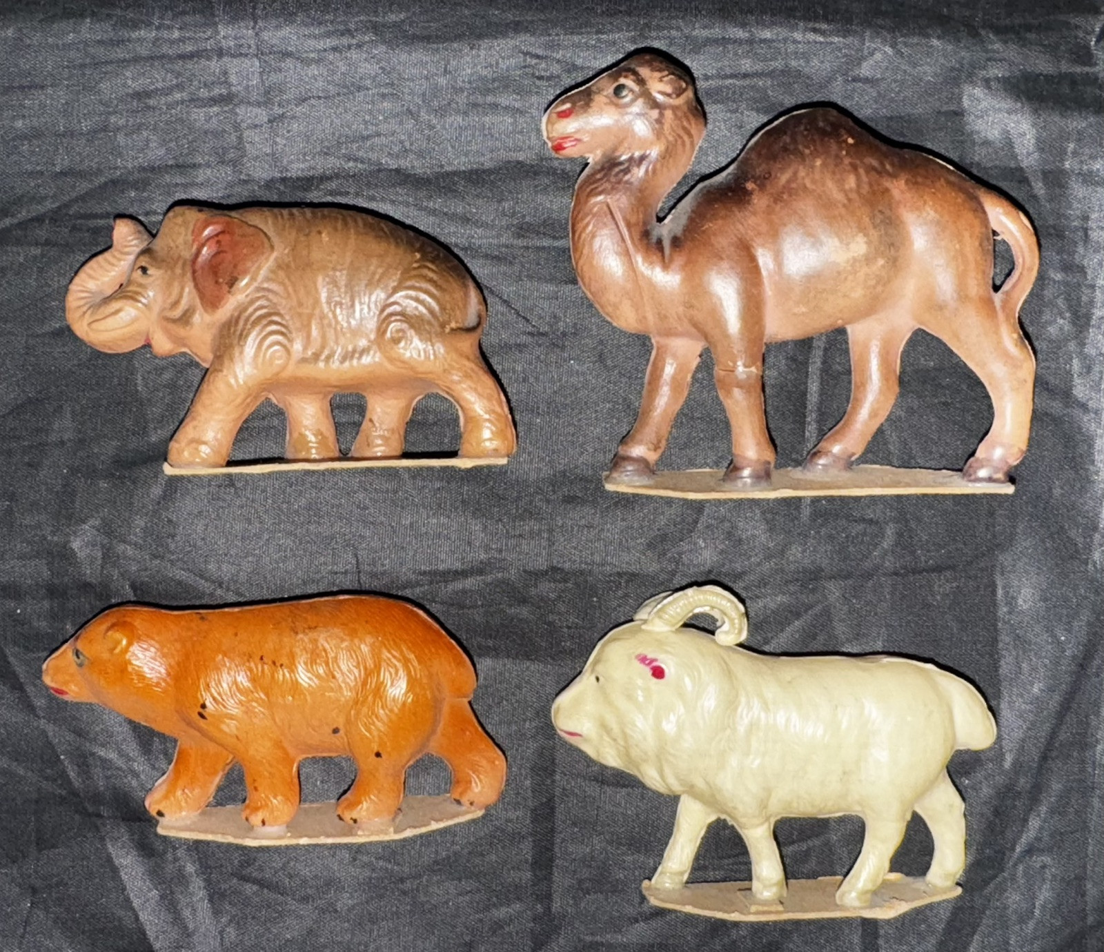 • Lot of 4 Vintage Celluloid Animals Camel Bear Elephant Ram