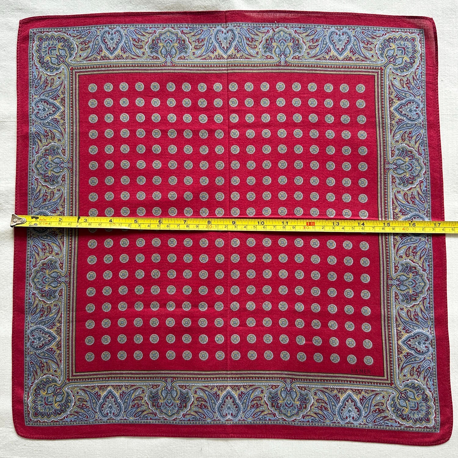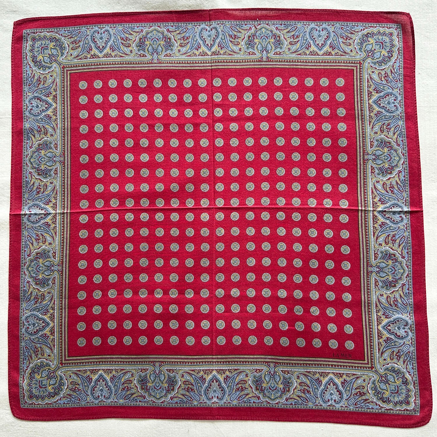 Handkerchief Vintage Dark Red Cotton Geometric Damask Classic Pocket Square 17