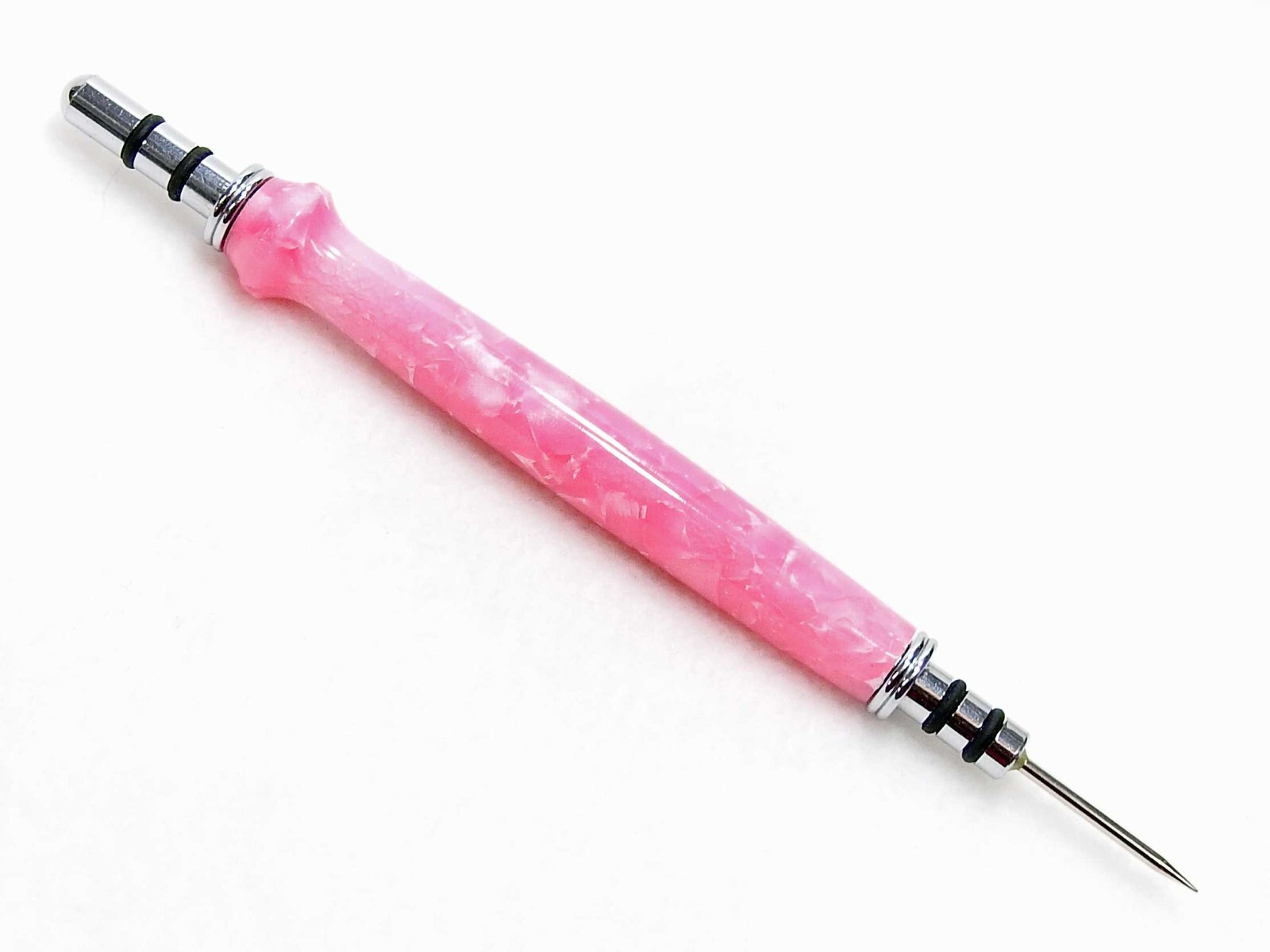как выглядит Handmade Double Seam Ripper w/ Sewing Stiletto, Rose Blush Pink Crush Acrylic фото