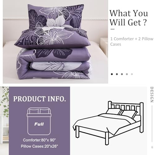 Comforter Set Floral Bedding Comforter Sets - Soft Microfiber Full Dark Purple