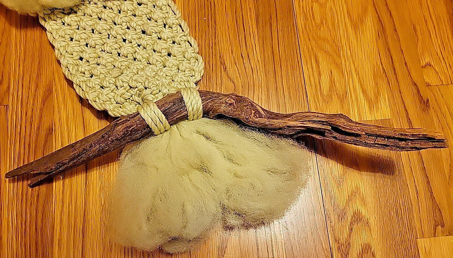 Vintage Macrame Owl Mid-Century Modern Boho Jute Wall Hanging Fluffy Wood Eyes