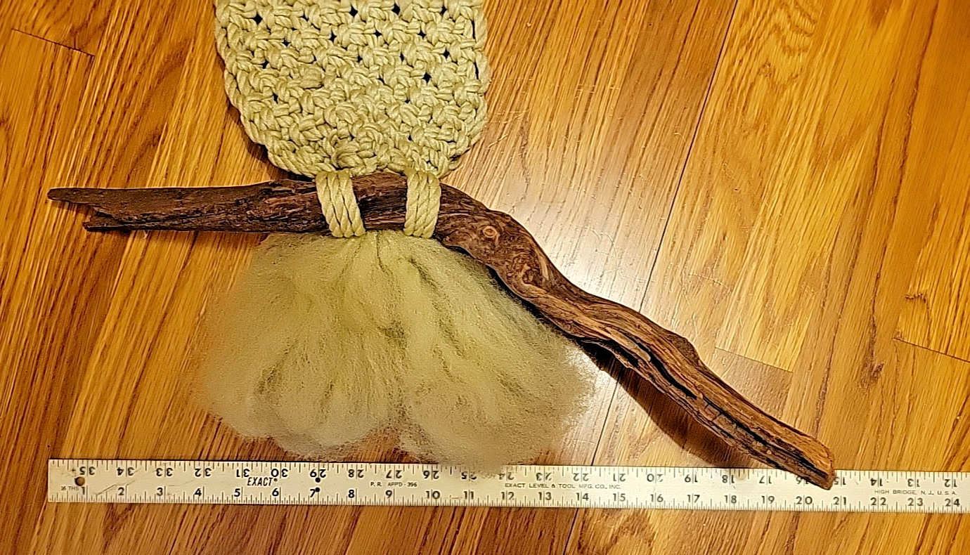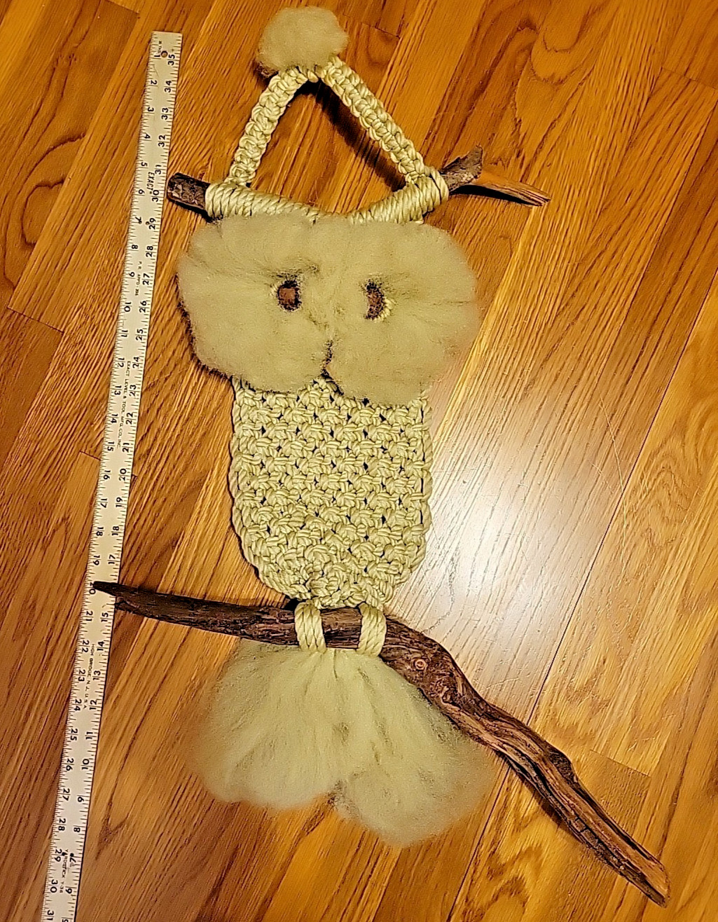 как выглядит Vintage Macrame Owl Mid-Century Modern Boho Jute Wall Hanging Fluffy Wood Eyes фото