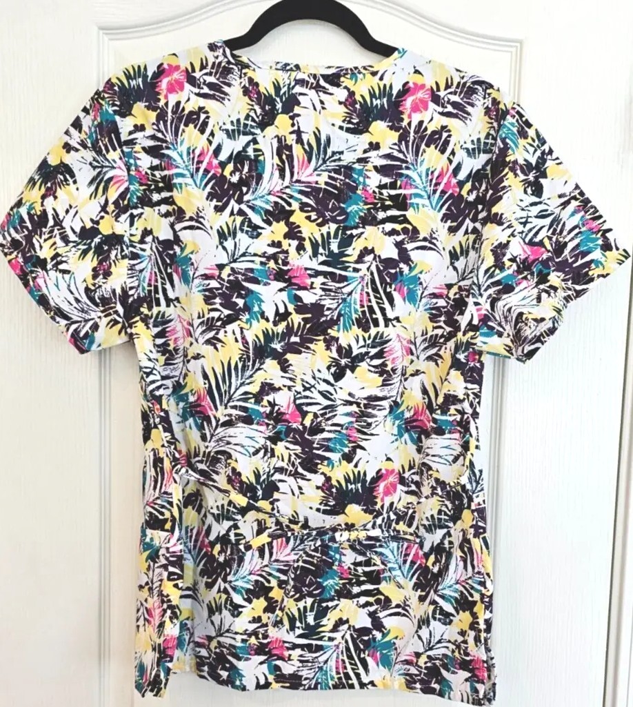 как выглядит Denice Scrubs Top Womens Size Medium Yellow Black Pink Pattern Workwear фото