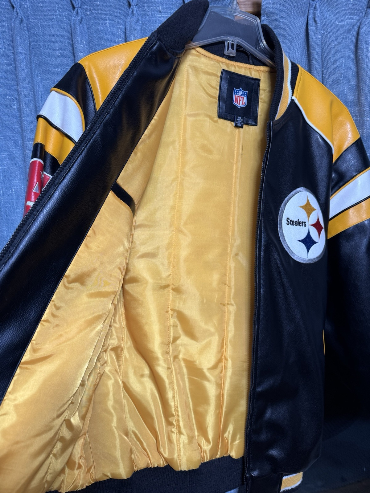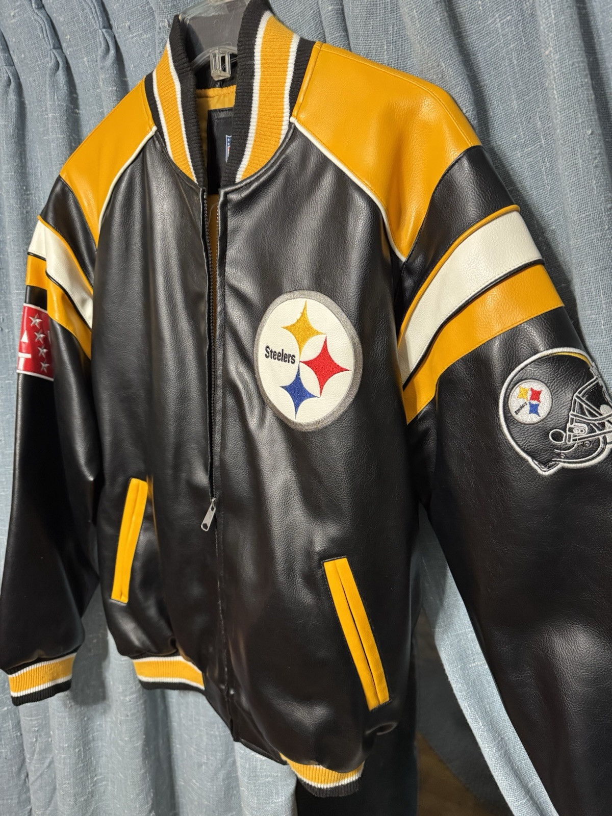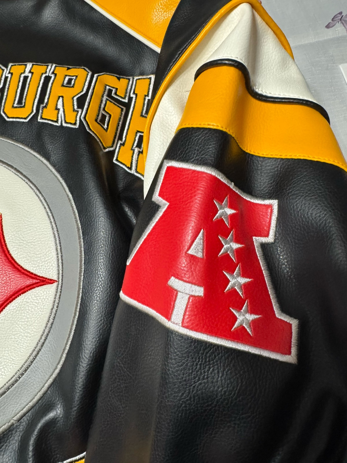 Pittsburgh Steelers Leather Letterman Bomber Jacket NFL Big Logo Size Large