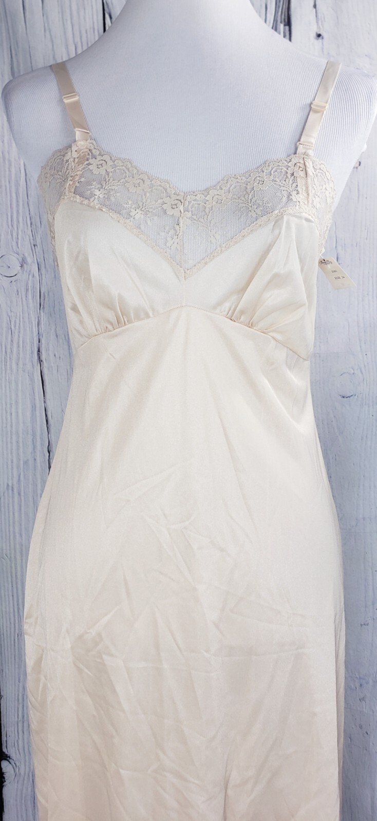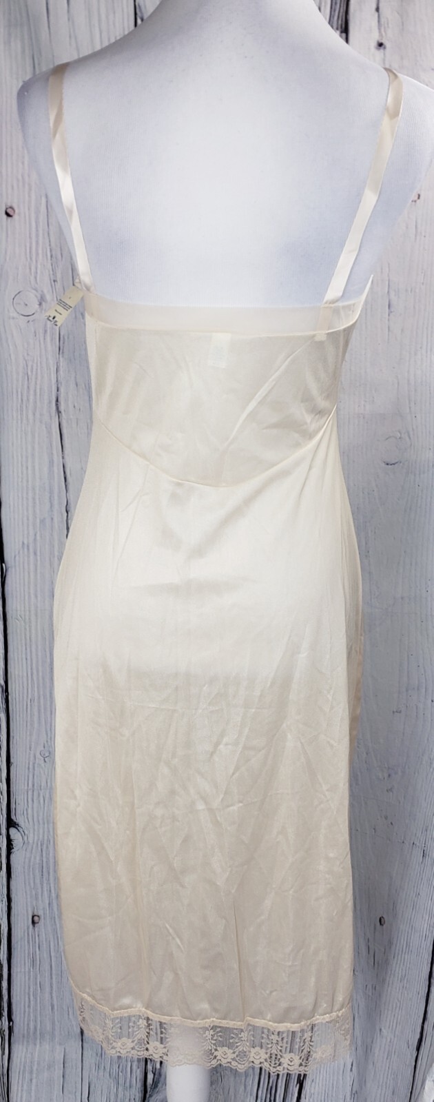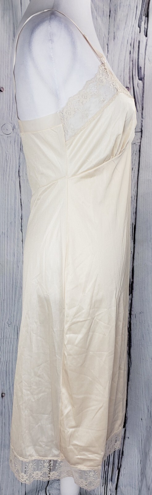 как выглядит VTG Nancy King Lingerie Full Slip Under Dress Beige Size 32 Adjustable 2161 фото
