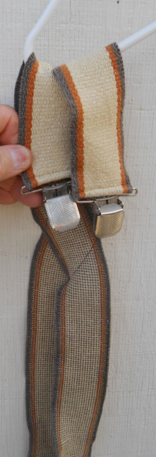 VINTAGE 70'S HANG TEN MEN'S CLIP ON SUSPENDERS SZ XLG COLOR TAN/ORANGE/BROWN