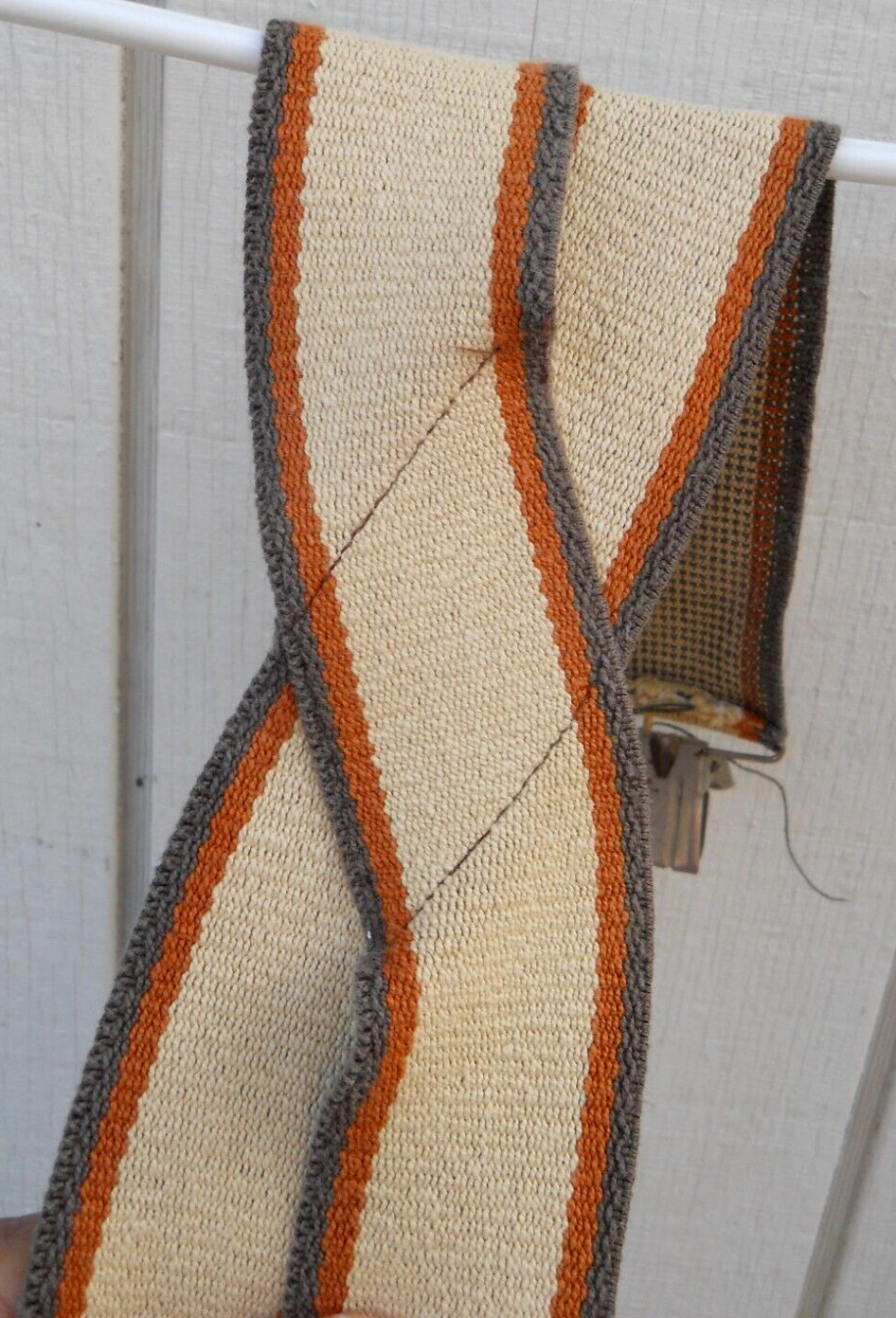 как выглядит VINTAGE 70S HANG TEN MENS CLIP ON SUSPENDERS SZ XLG COLOR TAN/ORANGE/BROWN фото