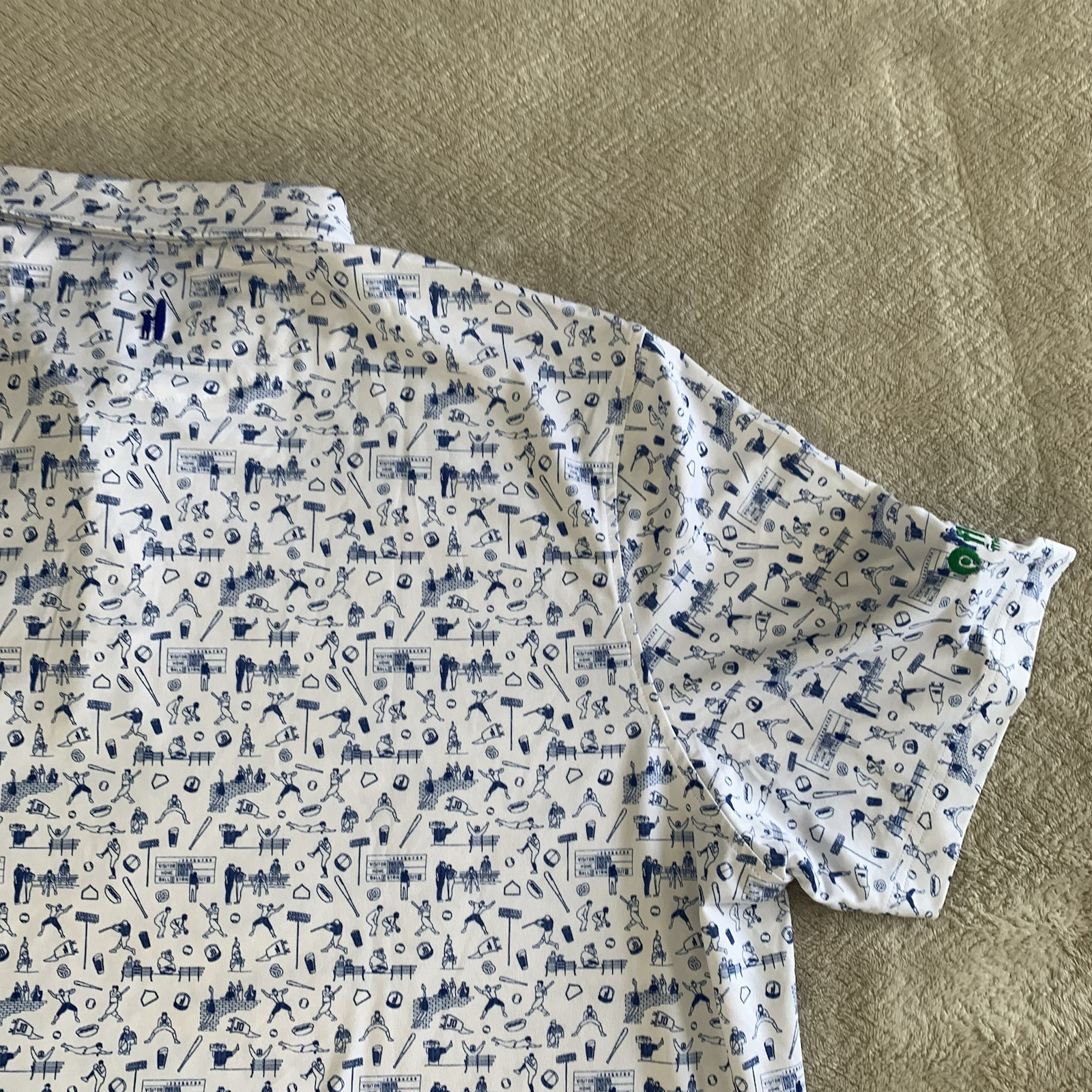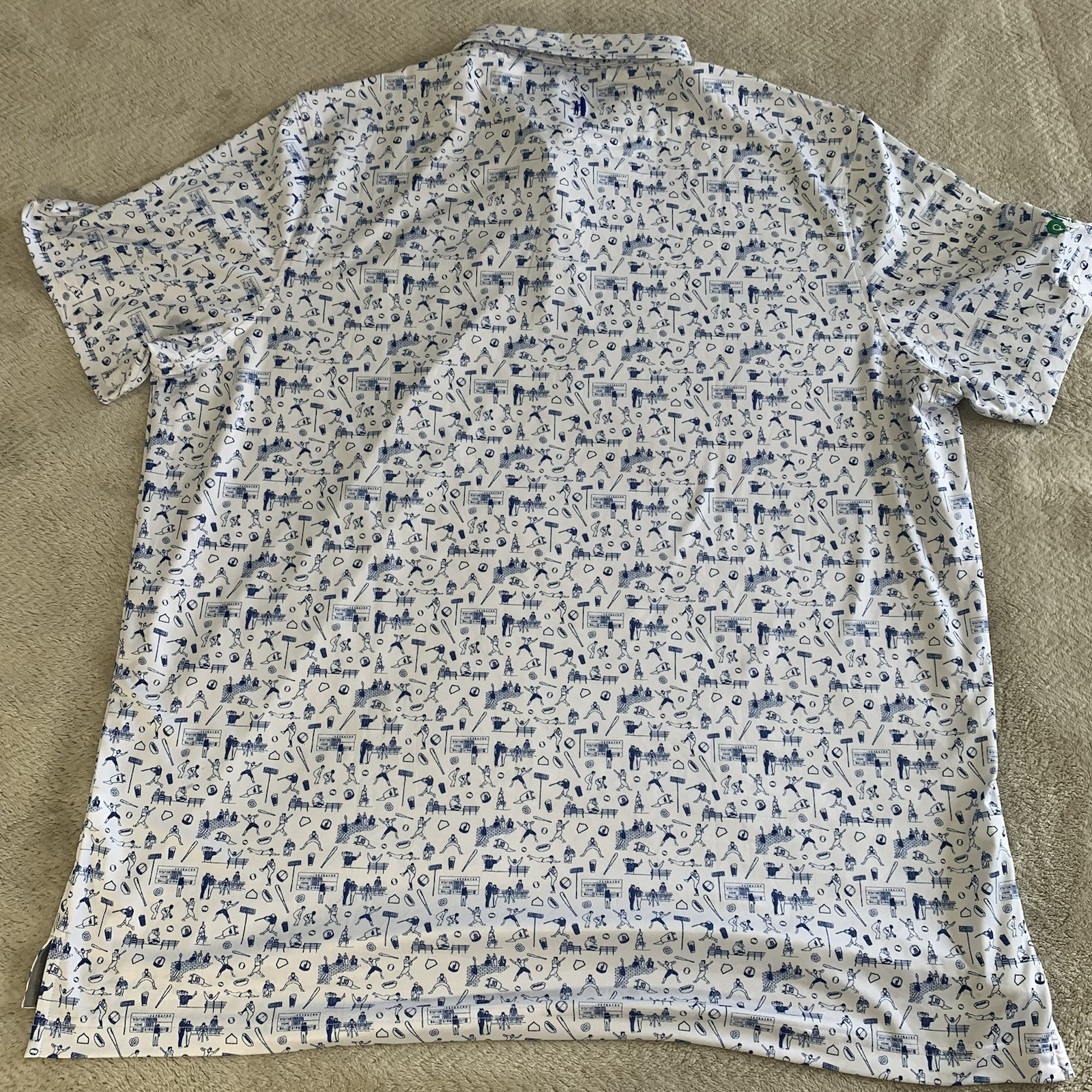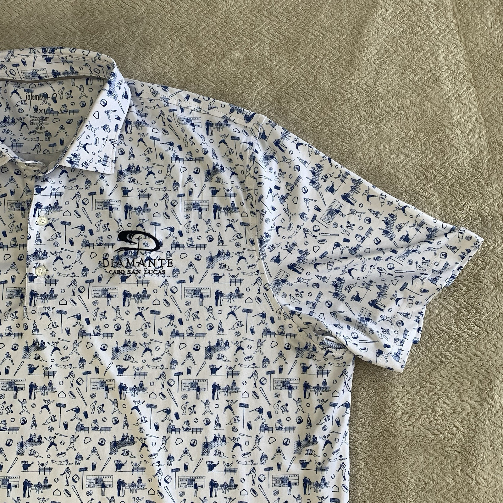 Johnnie-O Polo Shirt XXL White All Over Baseball Print Diamant First Tee Logo