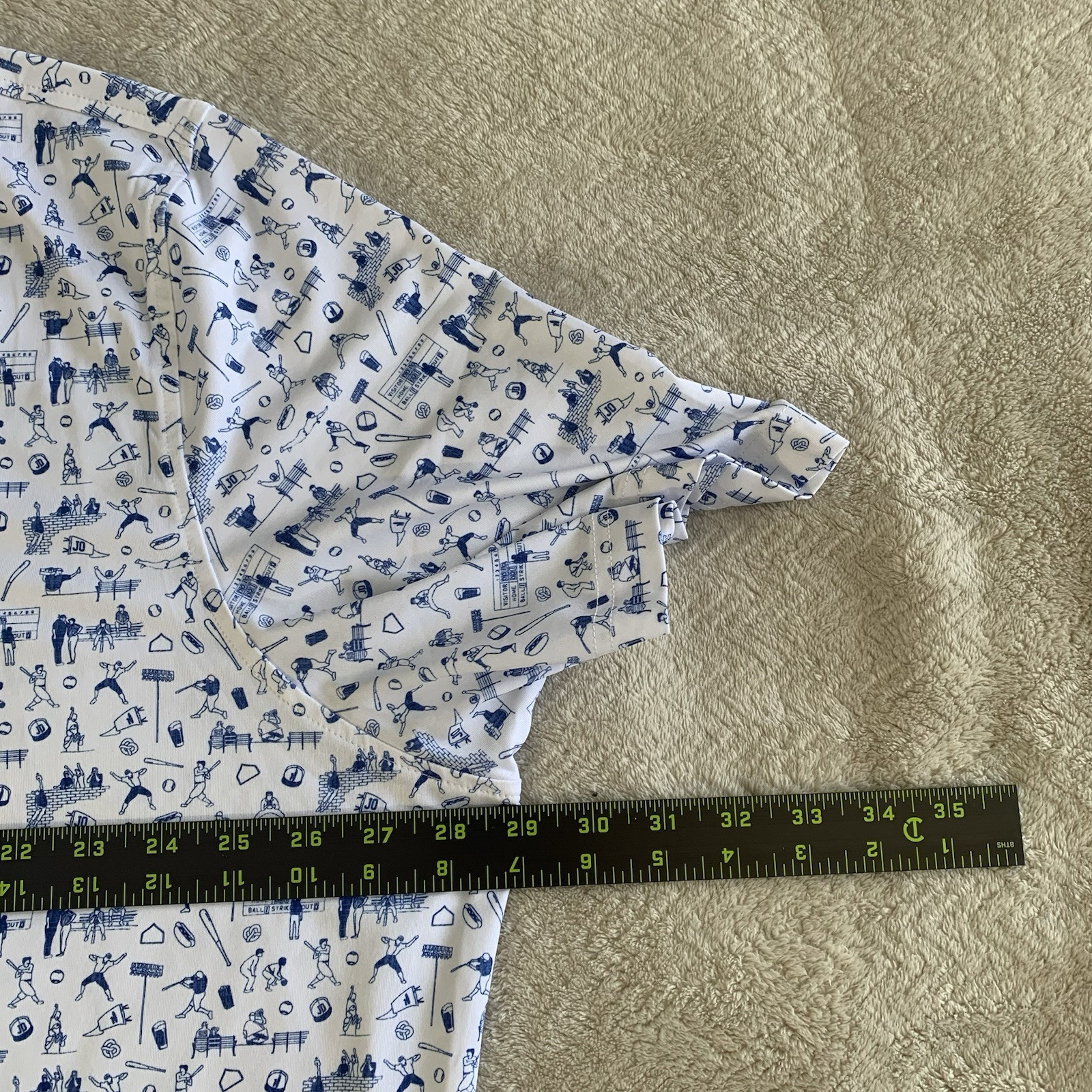 как выглядит Johnnie-O Polo Shirt XXL White All Over Baseball Print Diamant First Tee Logo фото