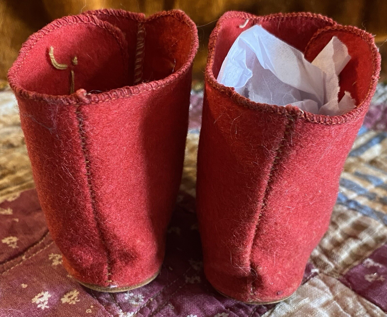 Extremely Rare Red Leather Button Up Boots For Antique Dolls Lot 2713