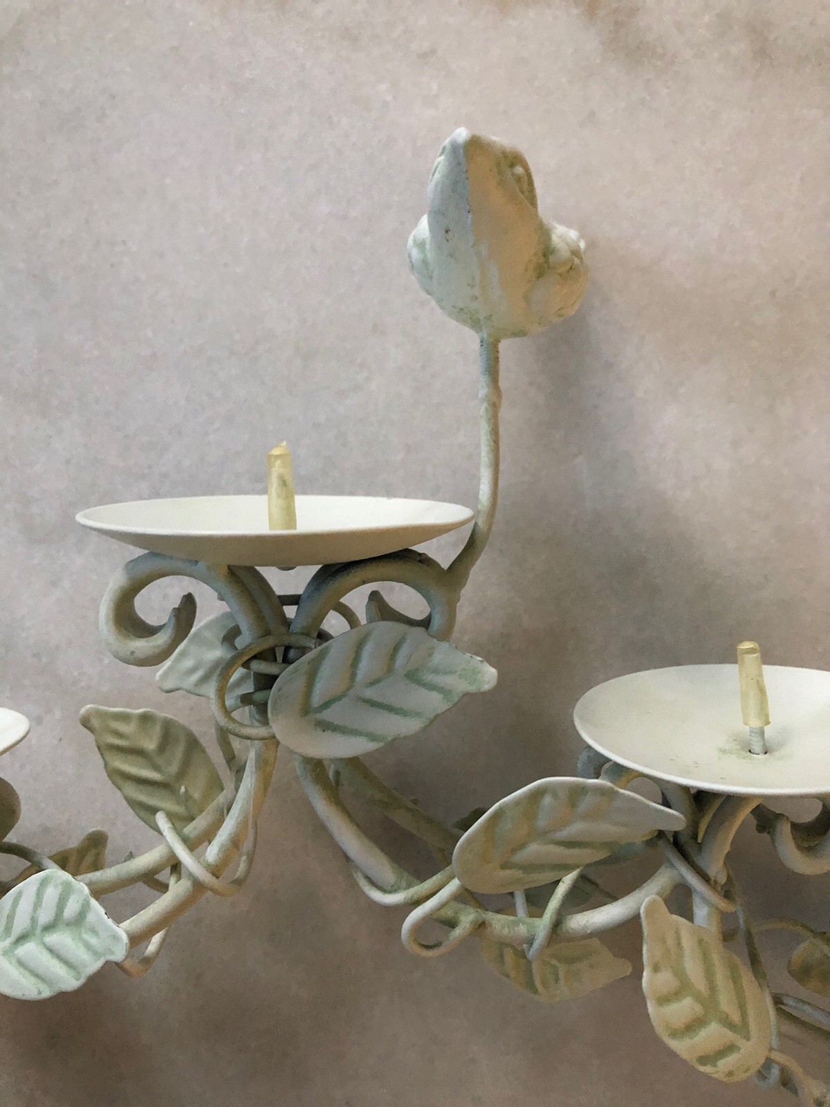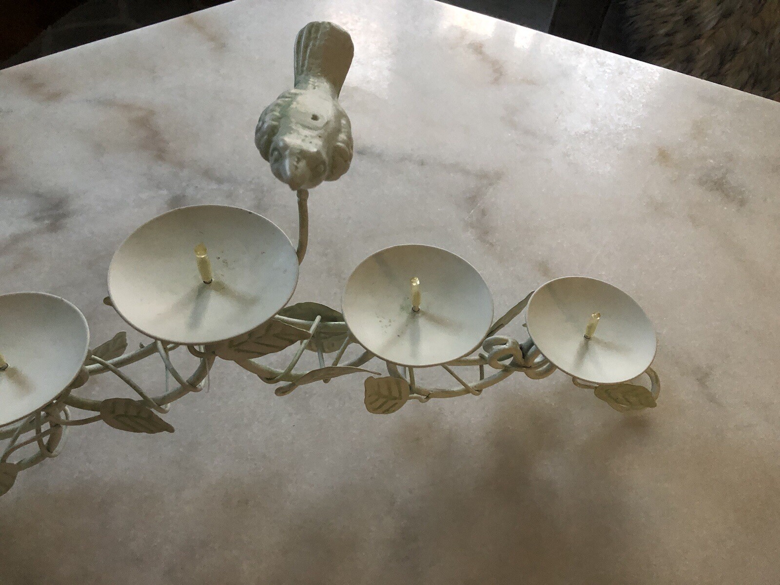 Centerpiece Table Bird and Leaves 5 Candle Holder Mint Green VTG