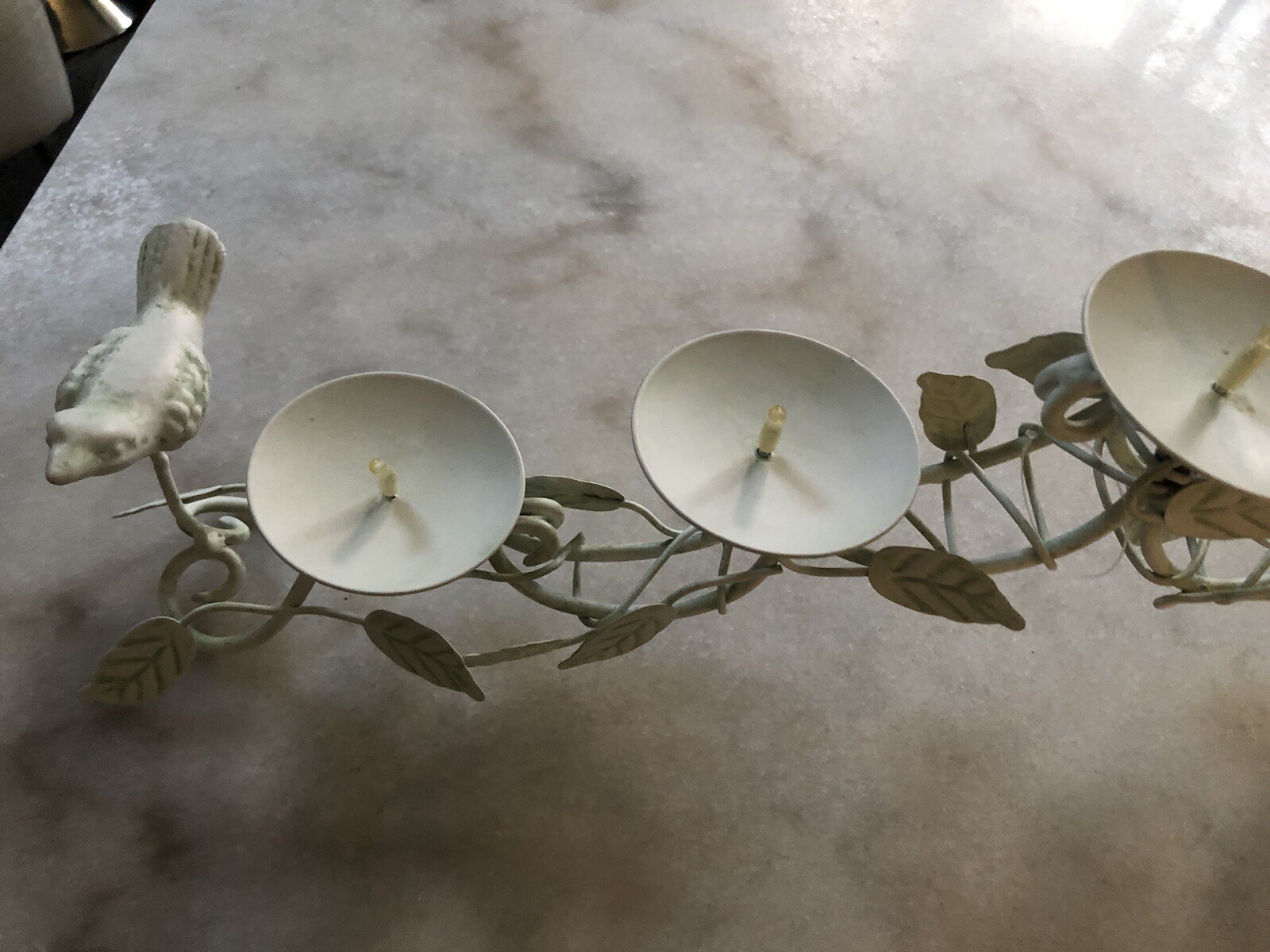 • Centerpiece Table Bird and Leaves 5 Candle Holder Mint Green VTG