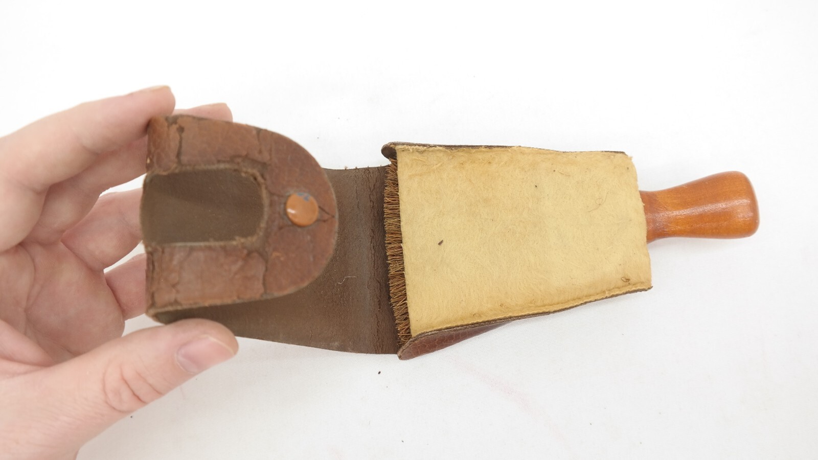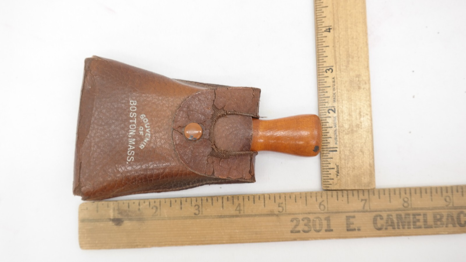 как выглядит Vintage Souvenir Clothes Brush w/ Leather Case Boston Mass S1 фото