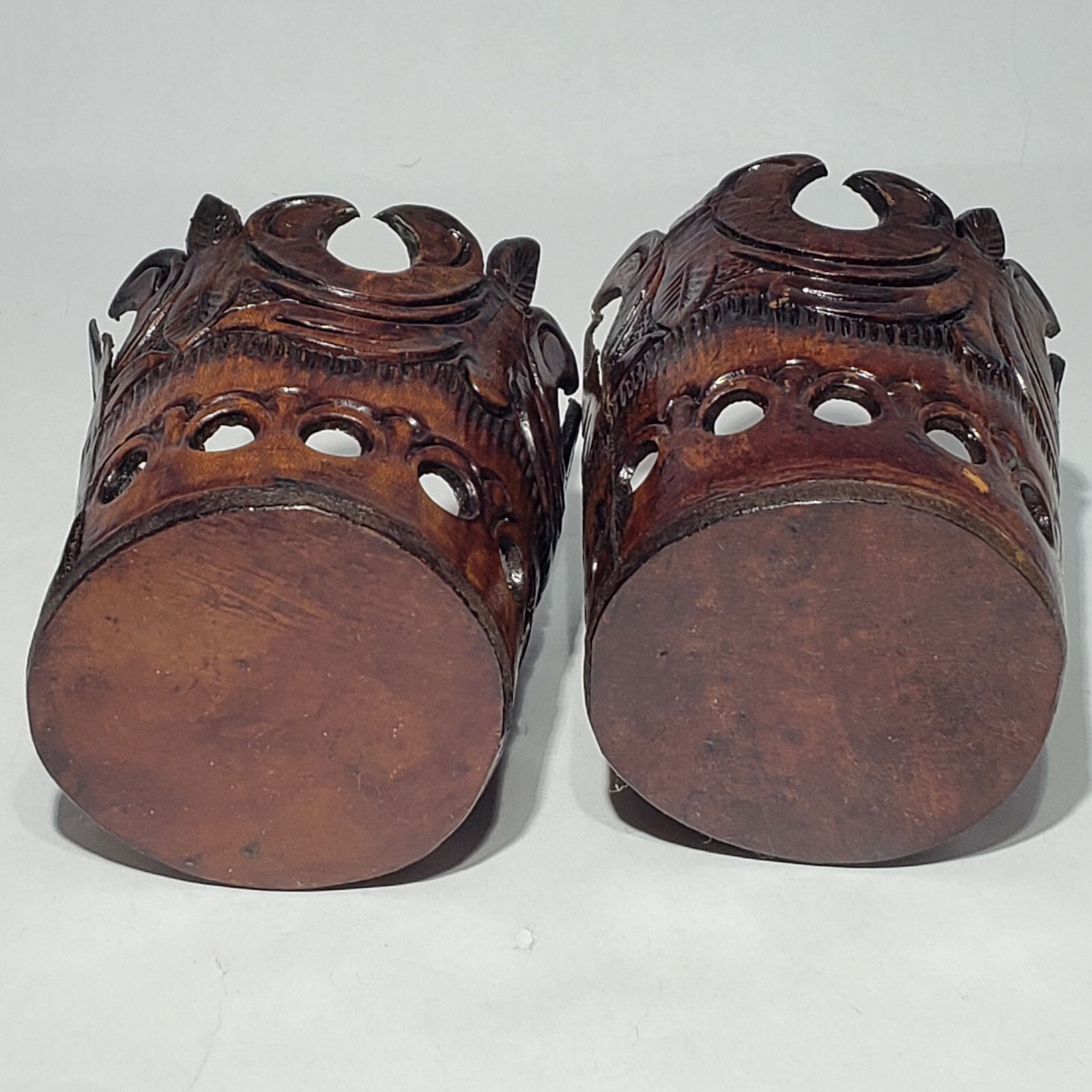 • Set of 2 Vintage Hand Tooled Cut Leather Cup Holders Drink Coasters