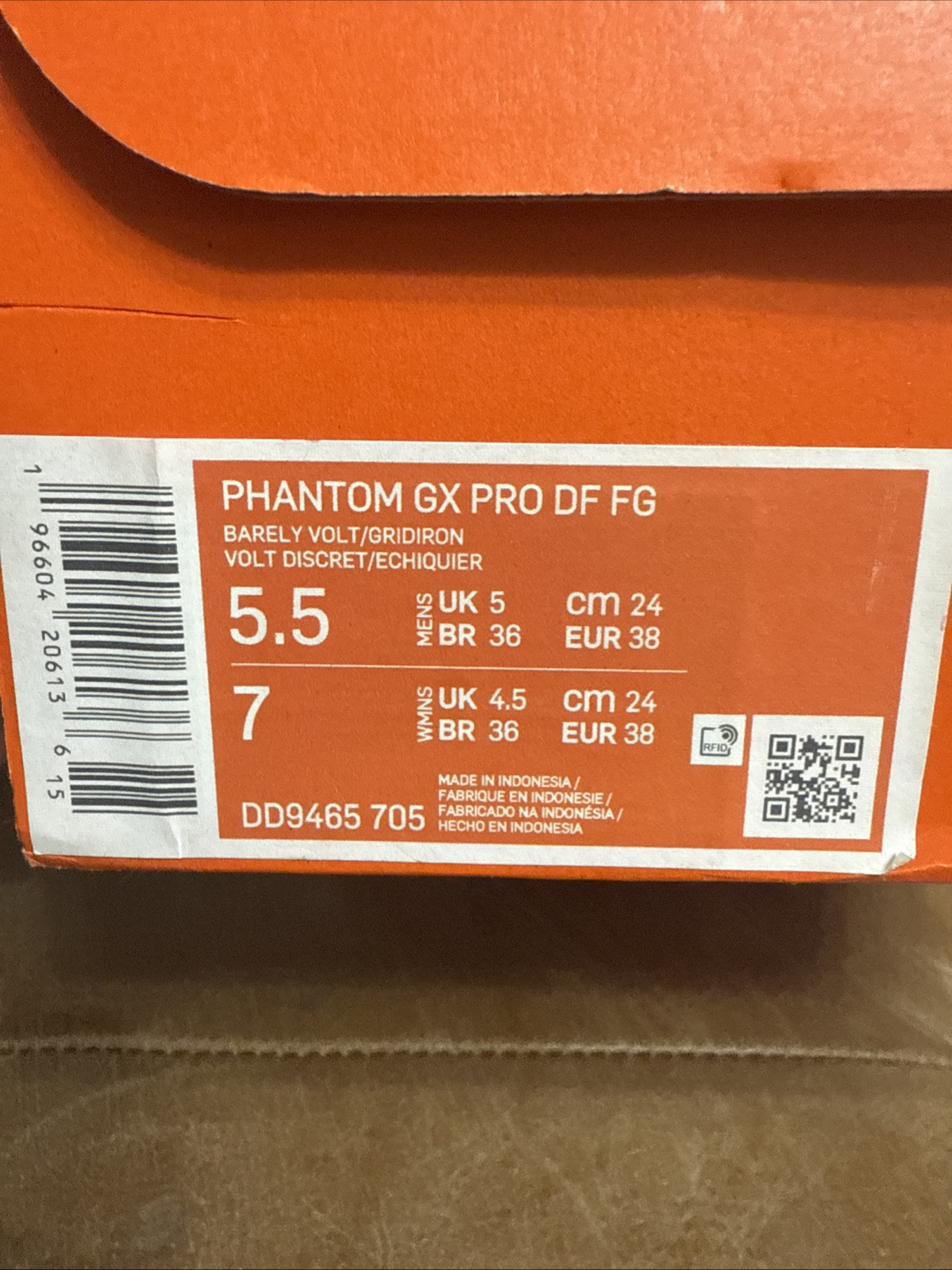 Nike Phantom GX Pro DF FG Soccer Cleats New DD9465-705 Barely Volt Kids 5.5