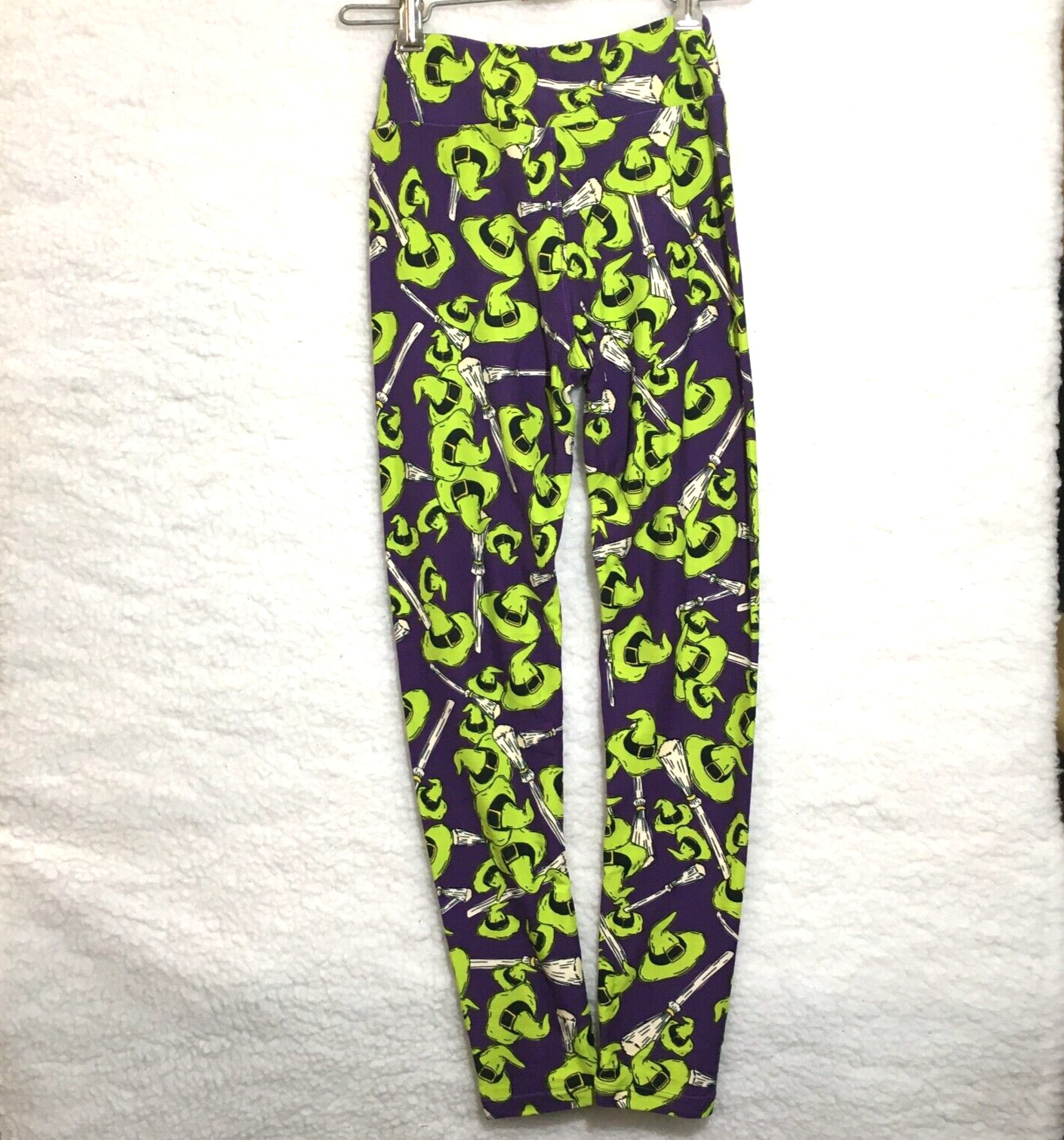 LuLaRoe leggings Tween kid 10-lady 2p Halloween witch hat broom on purple