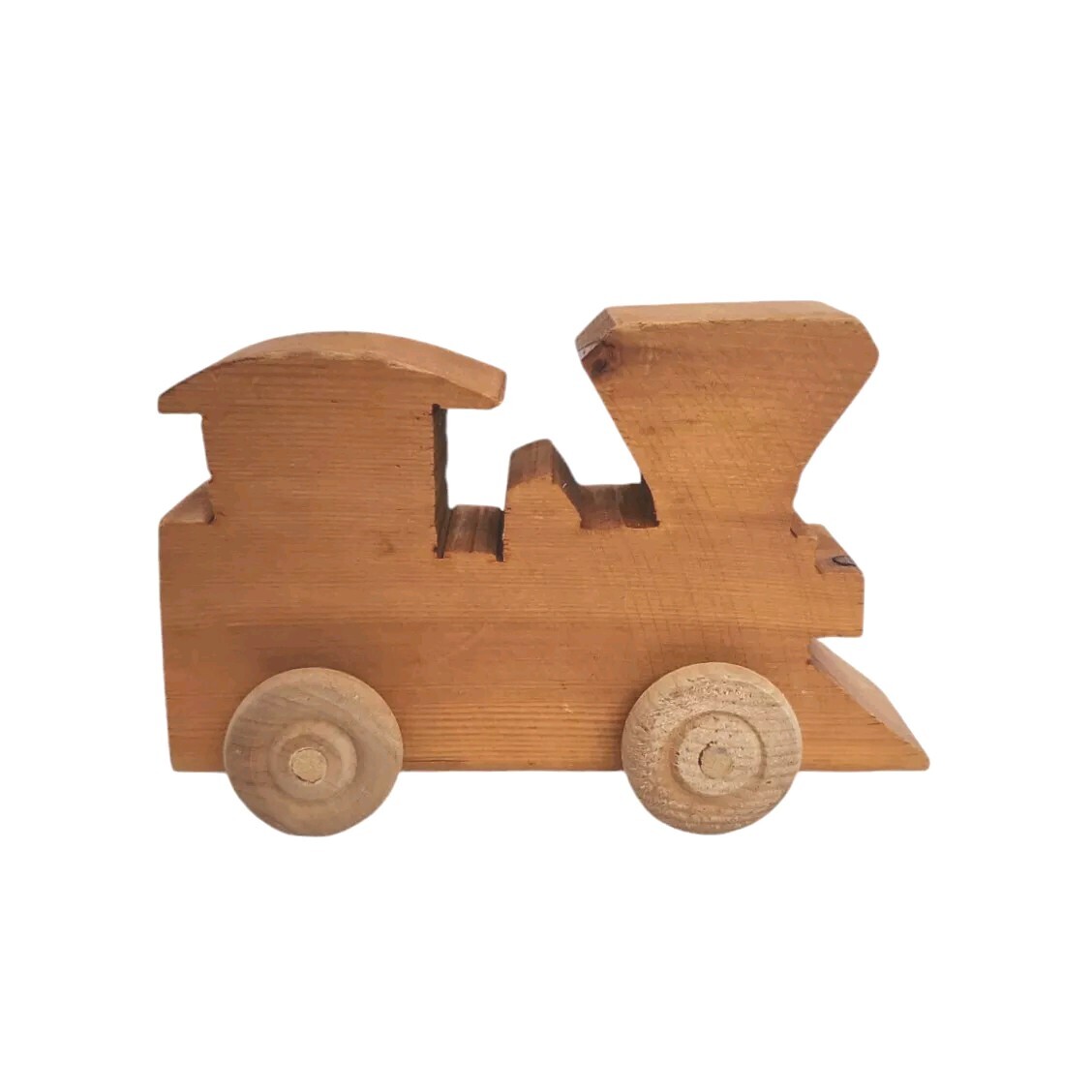 Vtg Wooden Train Engine Handmade Carved Solid Wood Push Pull Toy Decorative 5.5