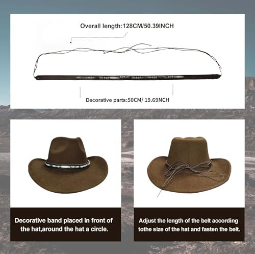 Cowboy Hat Bands for Women Men, Cowgirl Hat Bands for Western Hats Style B