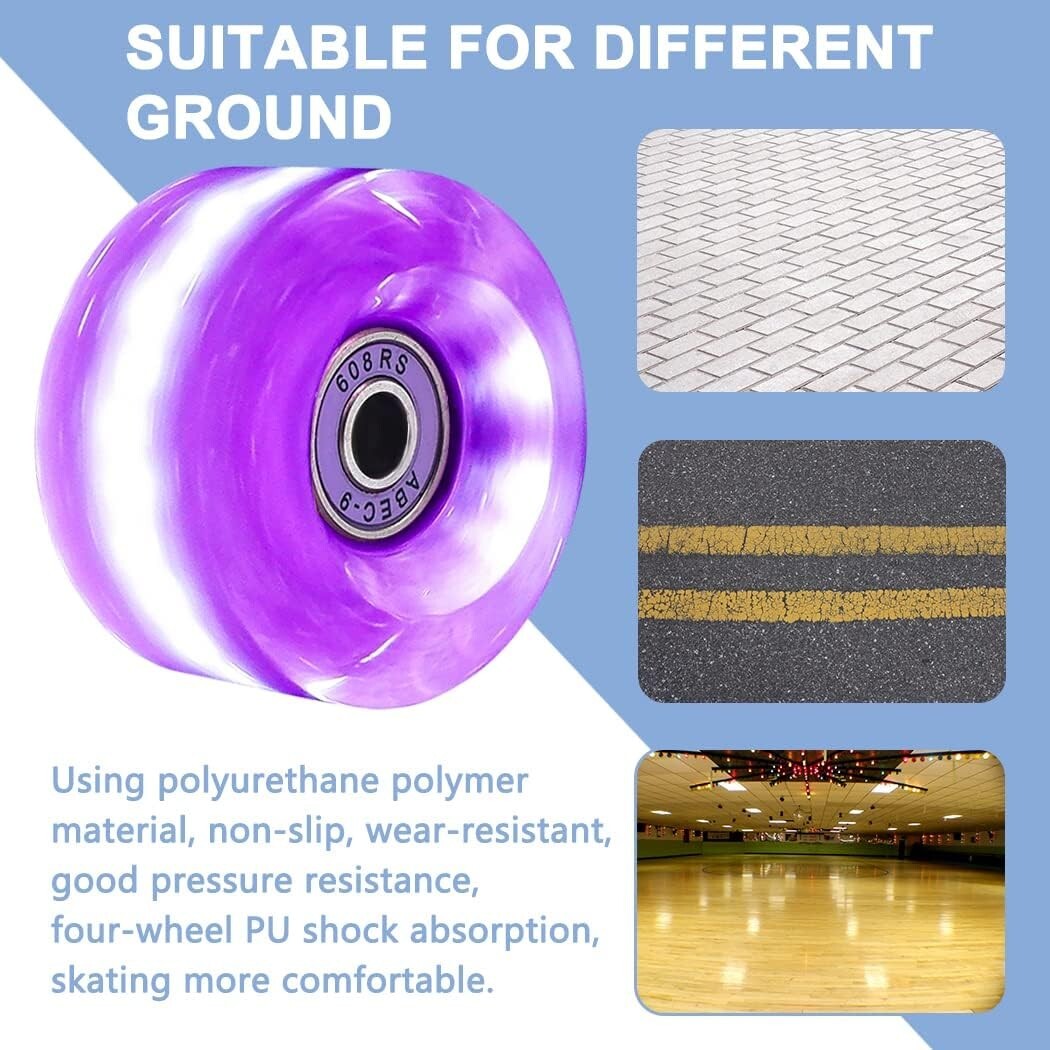 8Pack Purple 32x58 82A Quad Light Up Roller Skate Wheels with Bearings Installed