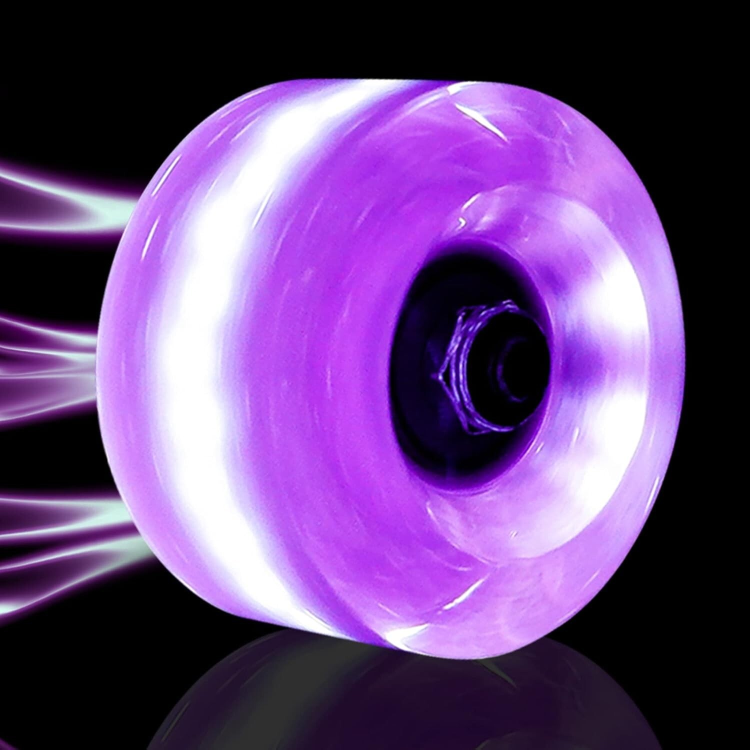 как выглядит 8Pack Purple 32x58 82A Quad Light Up Roller Skate Wheels with Bearings Installed фото