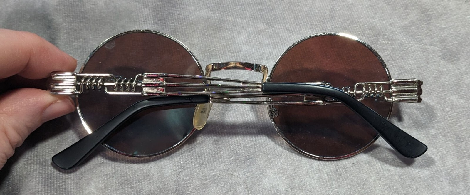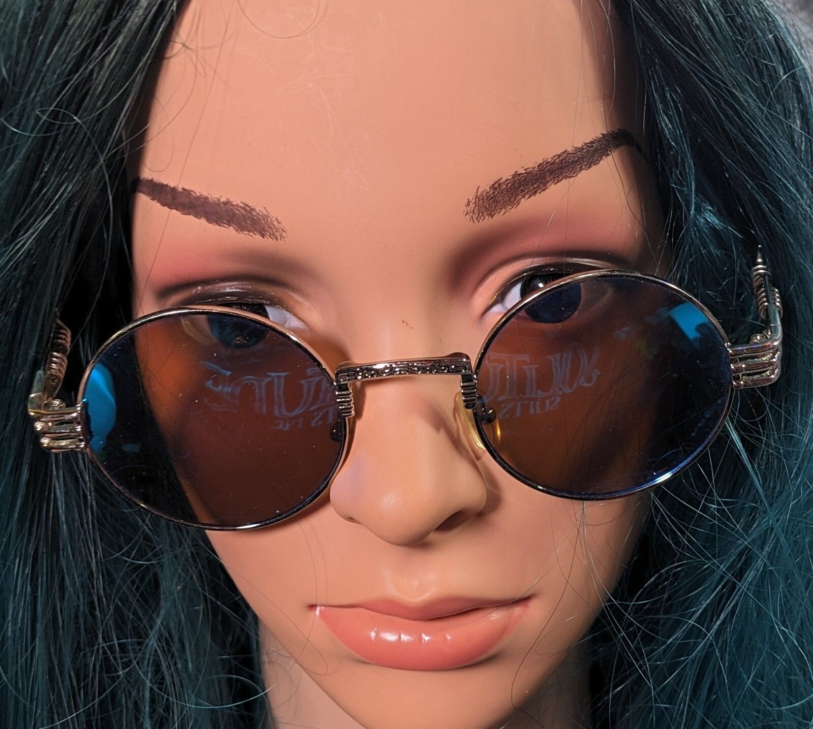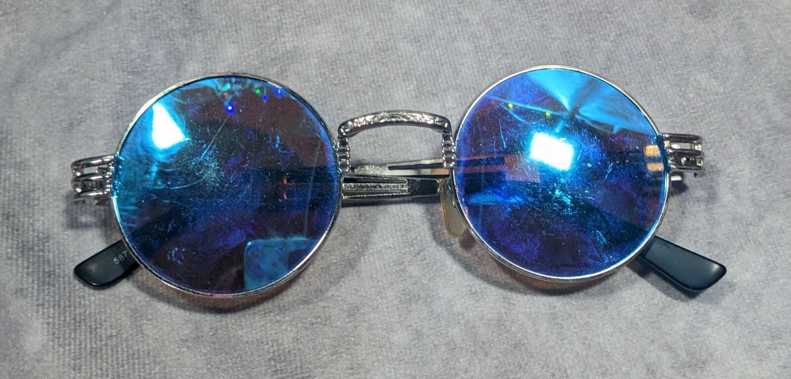 как выглядит Steampunk Retro Round Blue Mirror Lens Silver Tone Sunglasses фото