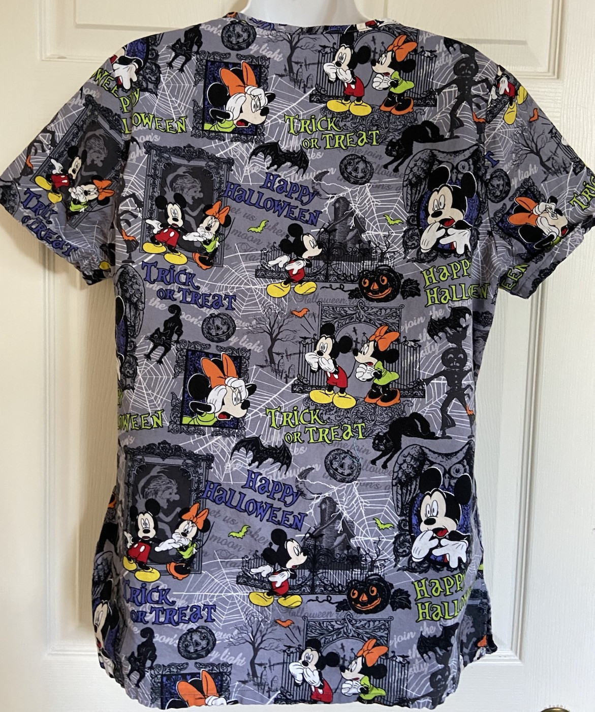 Disney Halloween/Mickey Minnie Mouse Gray Scrub Top Shirt - Women's Size S