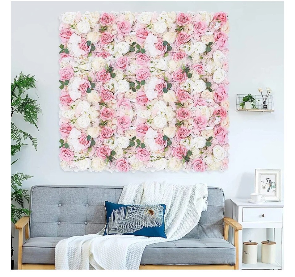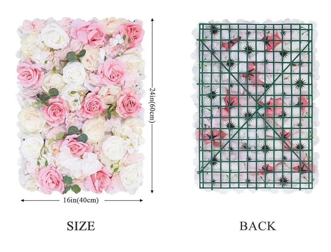 Wedding Artificial Silk Flower Wall Panel Backdrop Rose Pink White 16 X 24 Inch