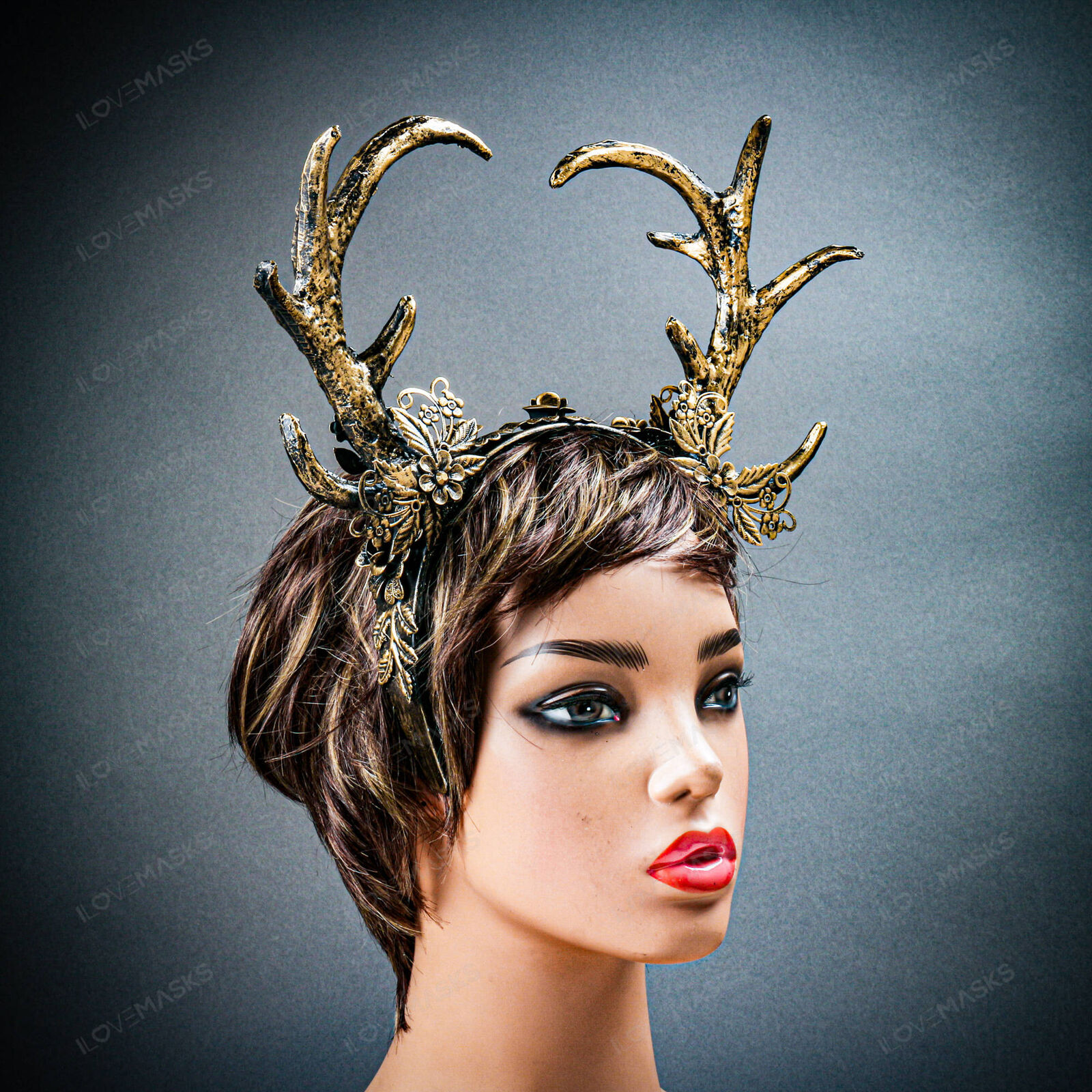 GOLD Antelope Deer Horns Halloween Costume Cosplay Headband Hair band HeadDress