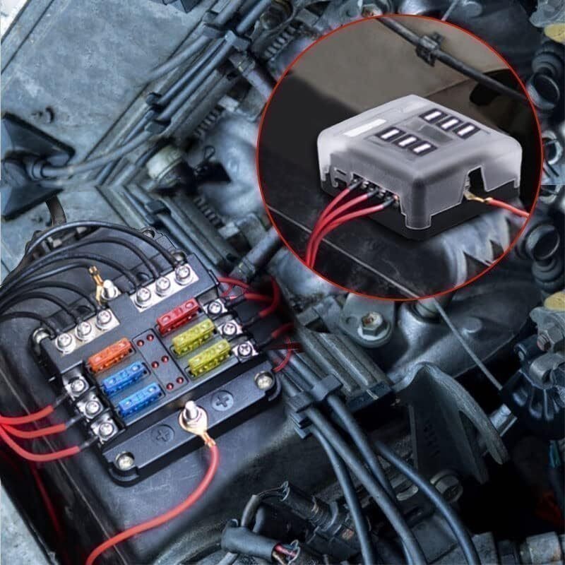 6 Way Car Boot Power Distribution 12 24V Blade Fuse Holder Box Block Panel Board