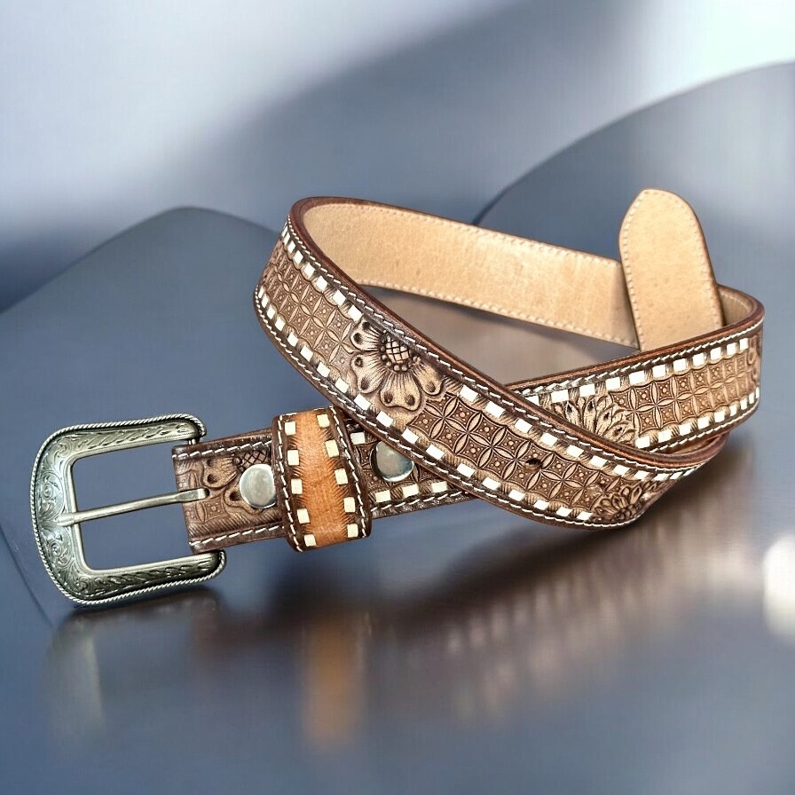 как выглядит Western Belt For Men Cowboy Full Grain Leather Hand Tooled With Removable Buckle фото