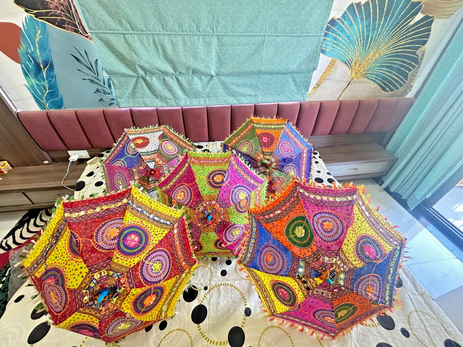 как выглядит Vibrant Indian Wedding Umbrella - Handcrafted with Cultural Motifs Tassels фото