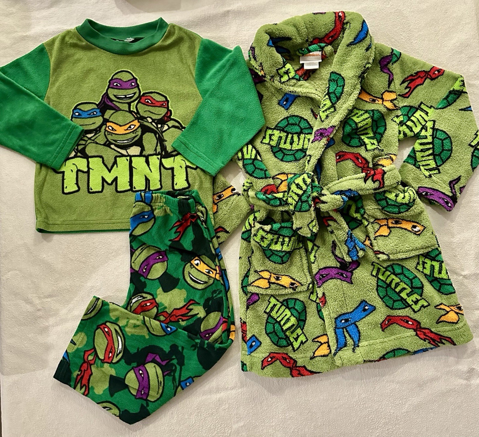 3 Piece TMNT Ninja Turtles Fleece Robe Pajamas Set Shirt Pants Boy's 4T