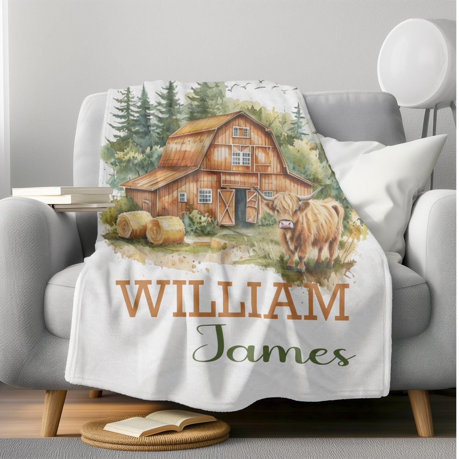 Personalized Farmhouse Baby Blanket - Rustic Highland Cow Baby Shower Gift