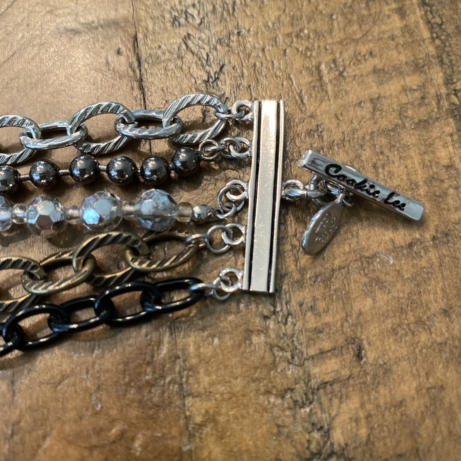 Cookie Lee Cuff Bracelet Multi strand Mixed Metal Colors 7